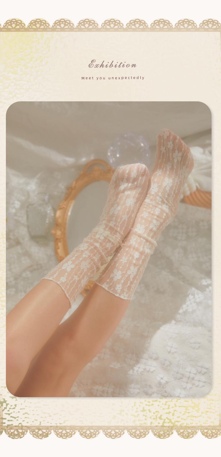 레이스 꽃 메쉬 양말 여성의 신선한 중간 길이 양말 여름 얇은 통기성 일본 스타일 JK 달콤한 더미 양말