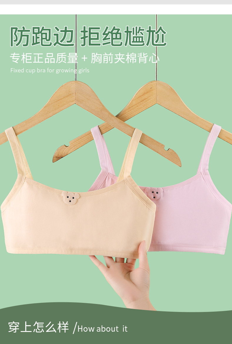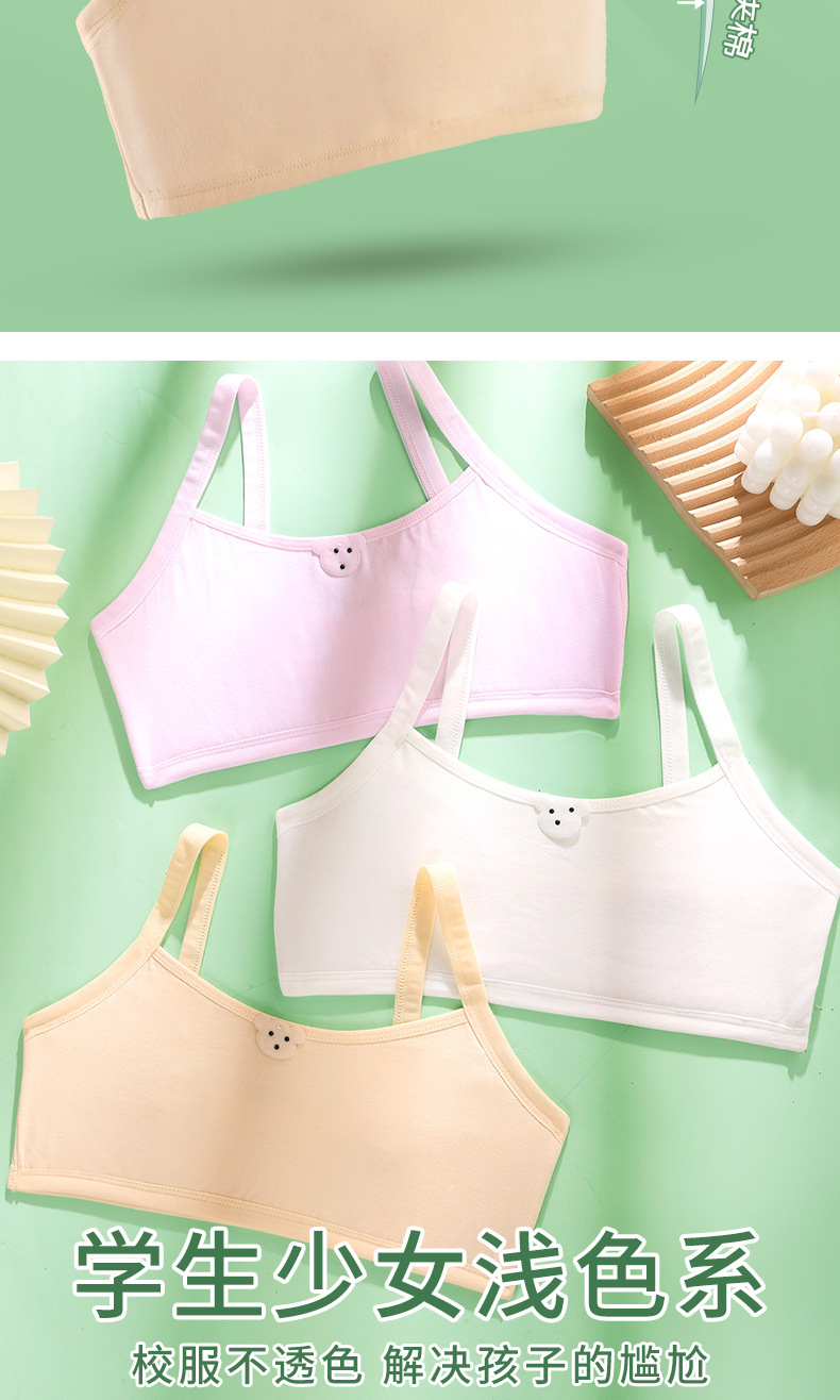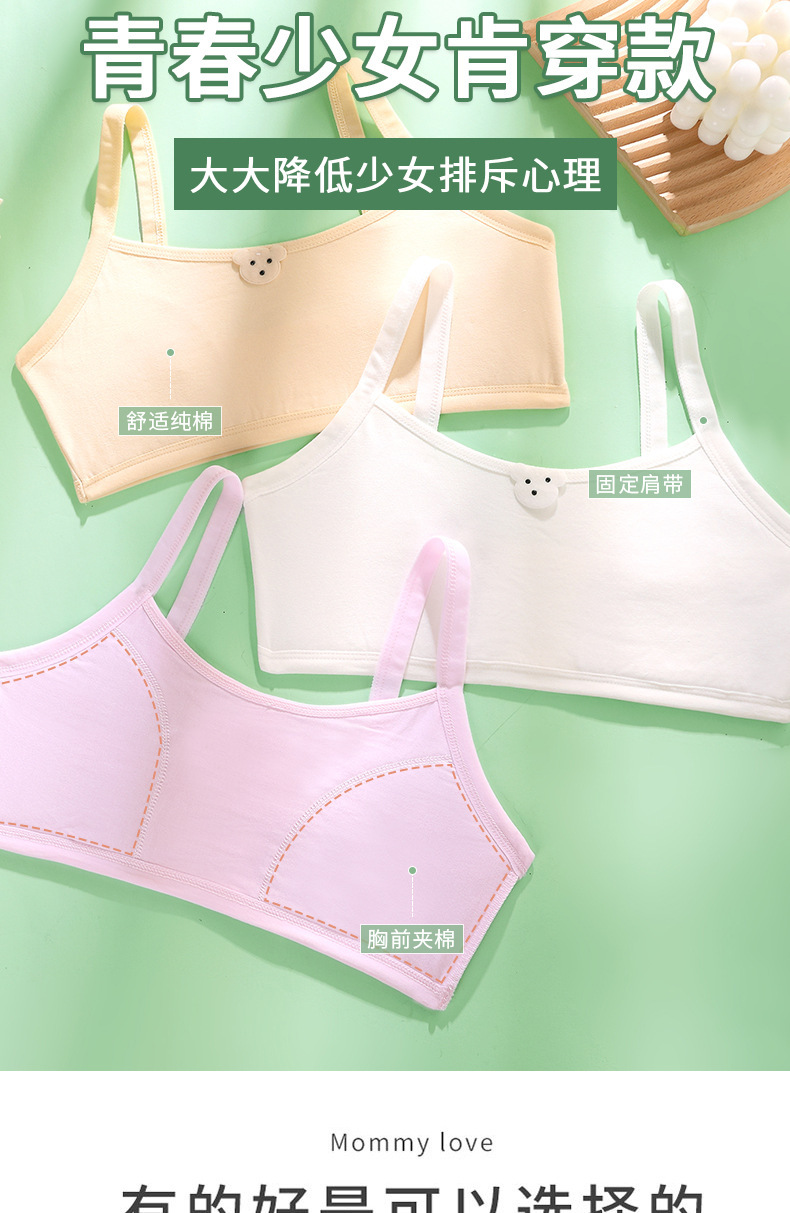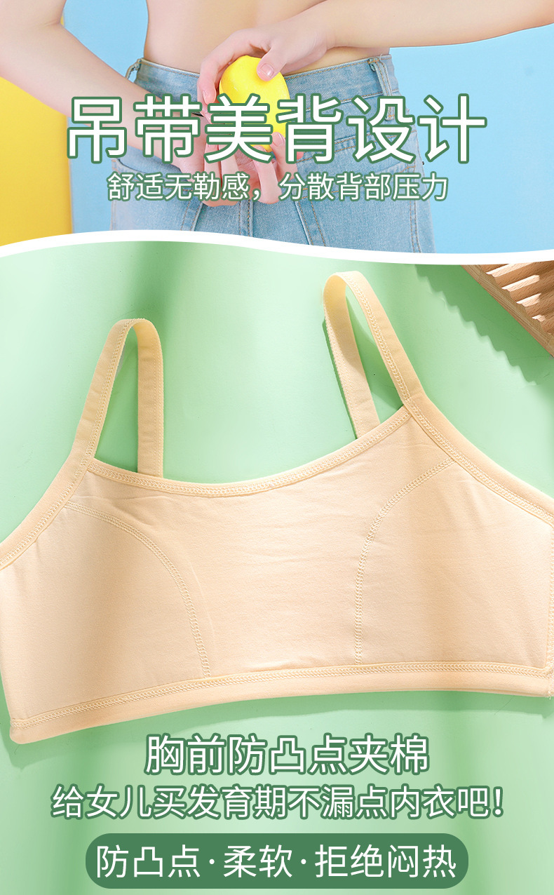 개발중인 소녀들을위한 안티 범프 속옷 순수 코튼 얇은 조끼 소녀와 초등학생을위한 첫 번째 단계 퀼트 브라