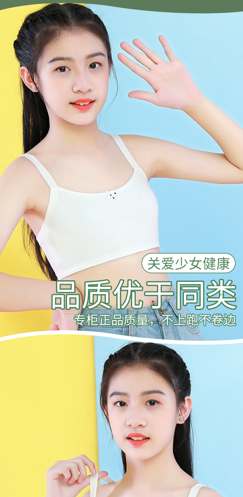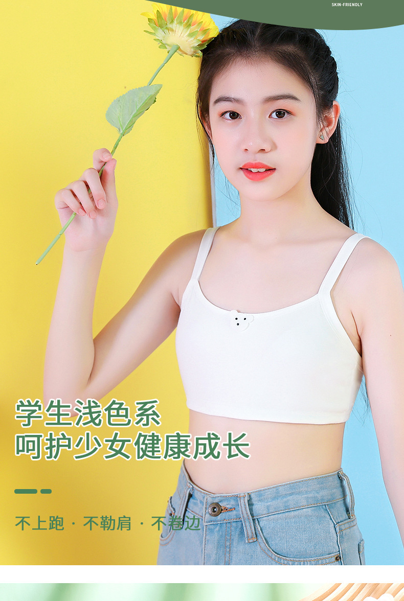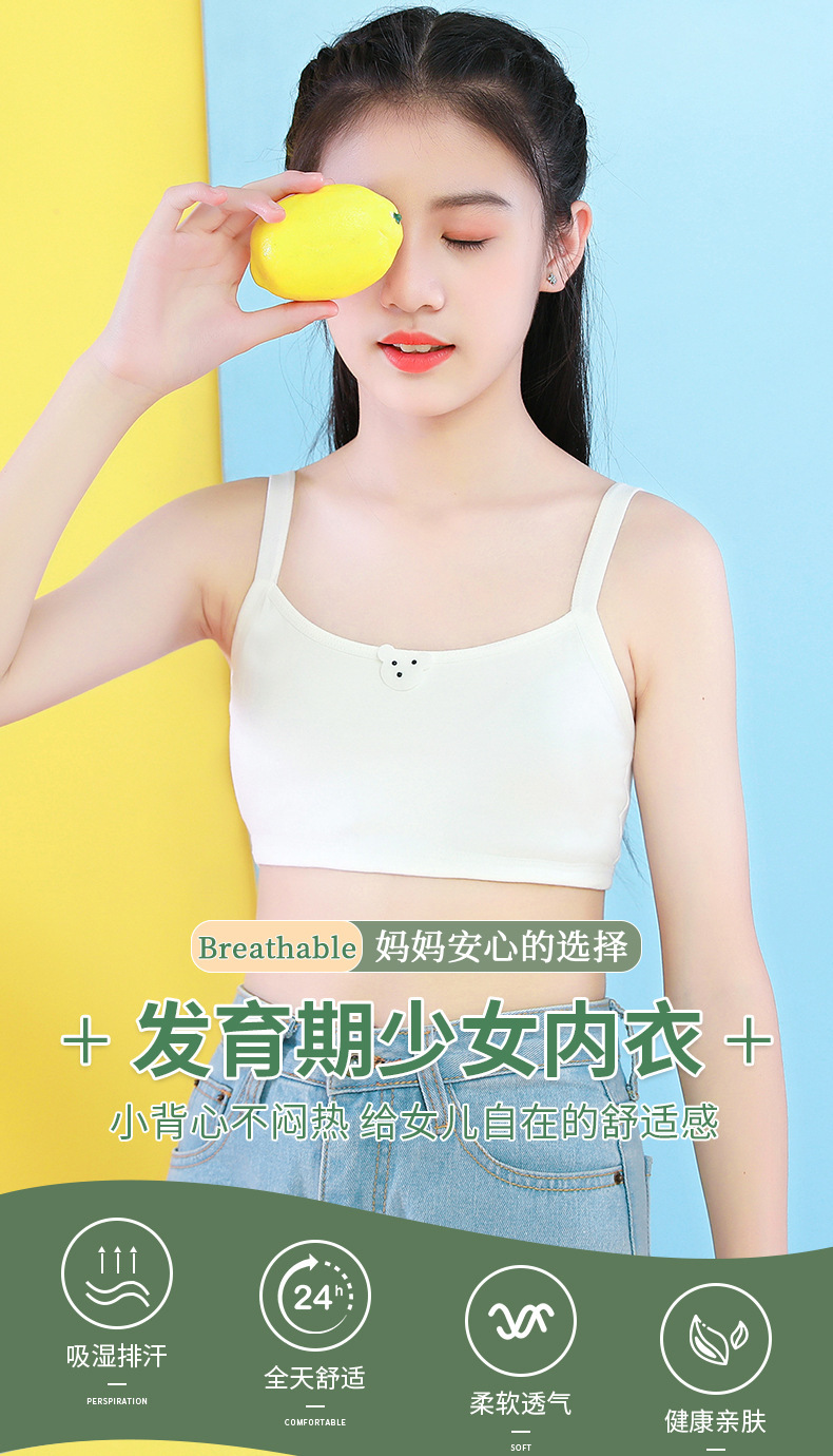 개발중인 소녀들을위한 안티 범프 속옷 순수 코튼 얇은 조끼 소녀와 초등학생을위한 첫 번째 단계 퀼트 브라