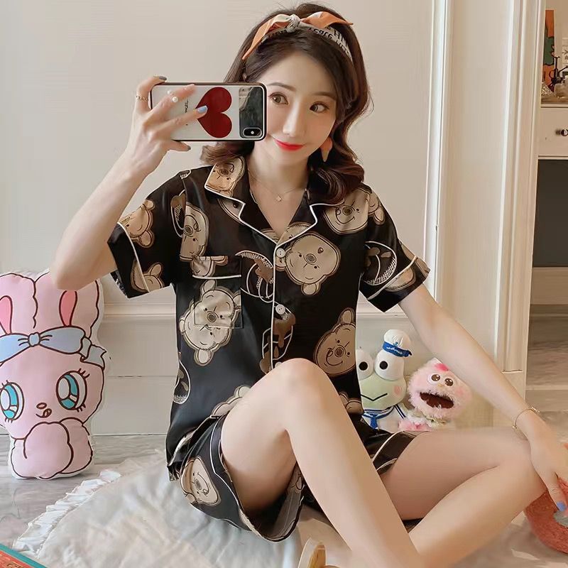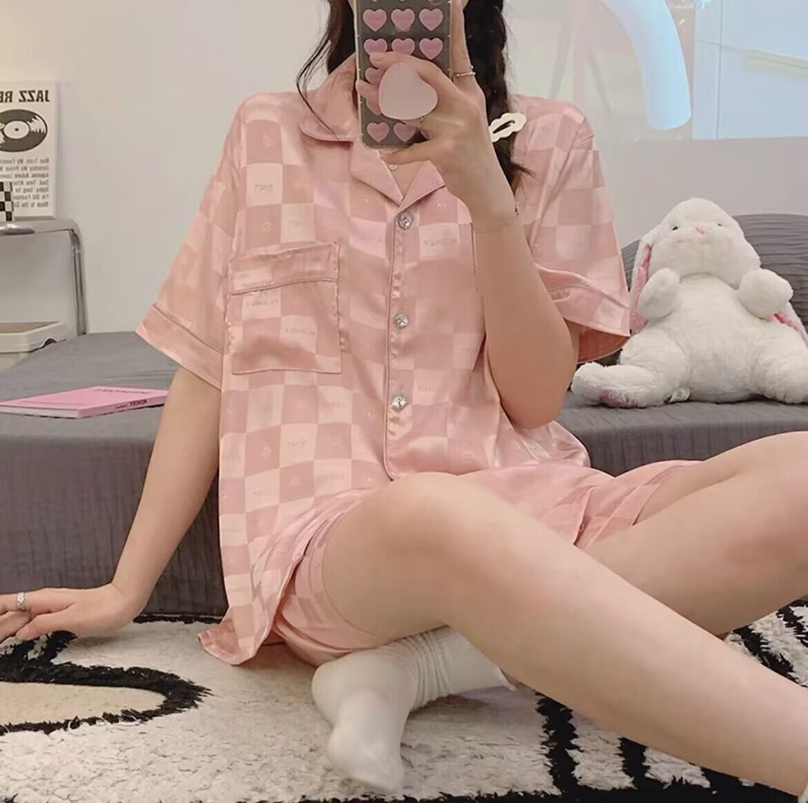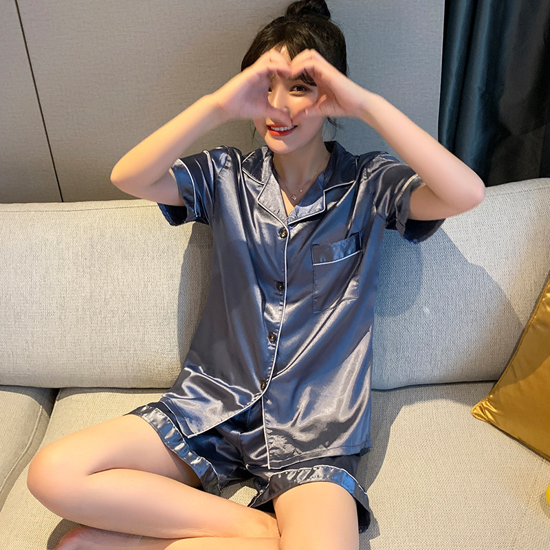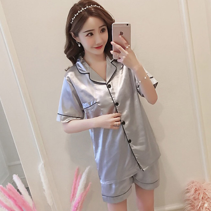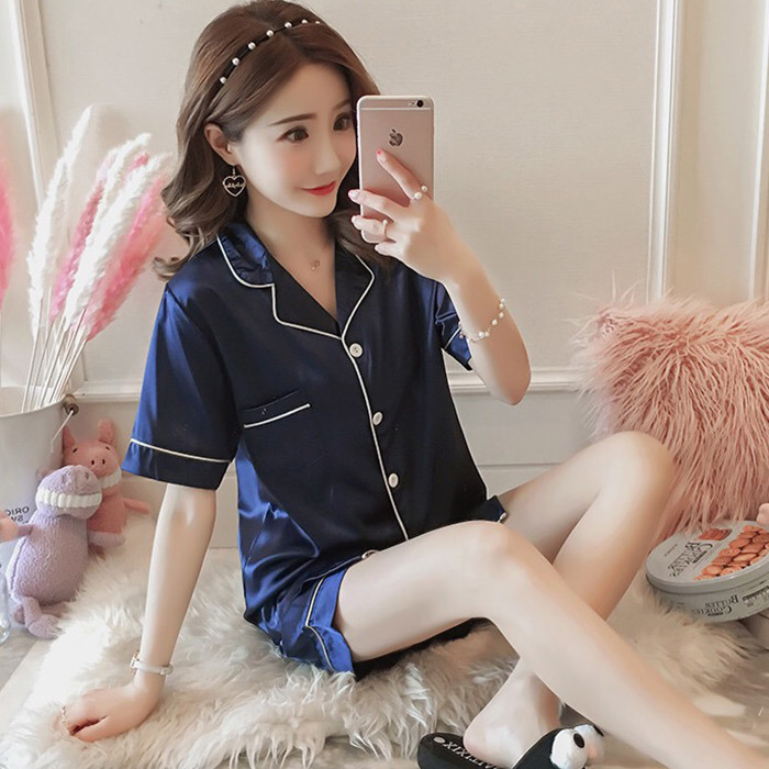 잠옷 여자 여름 아이스 실크 반팔 얇은 달콤한 귀여운 여자의 섹시한 여름 한국 스타일 홈 의류 투피스 세트스토어 가기