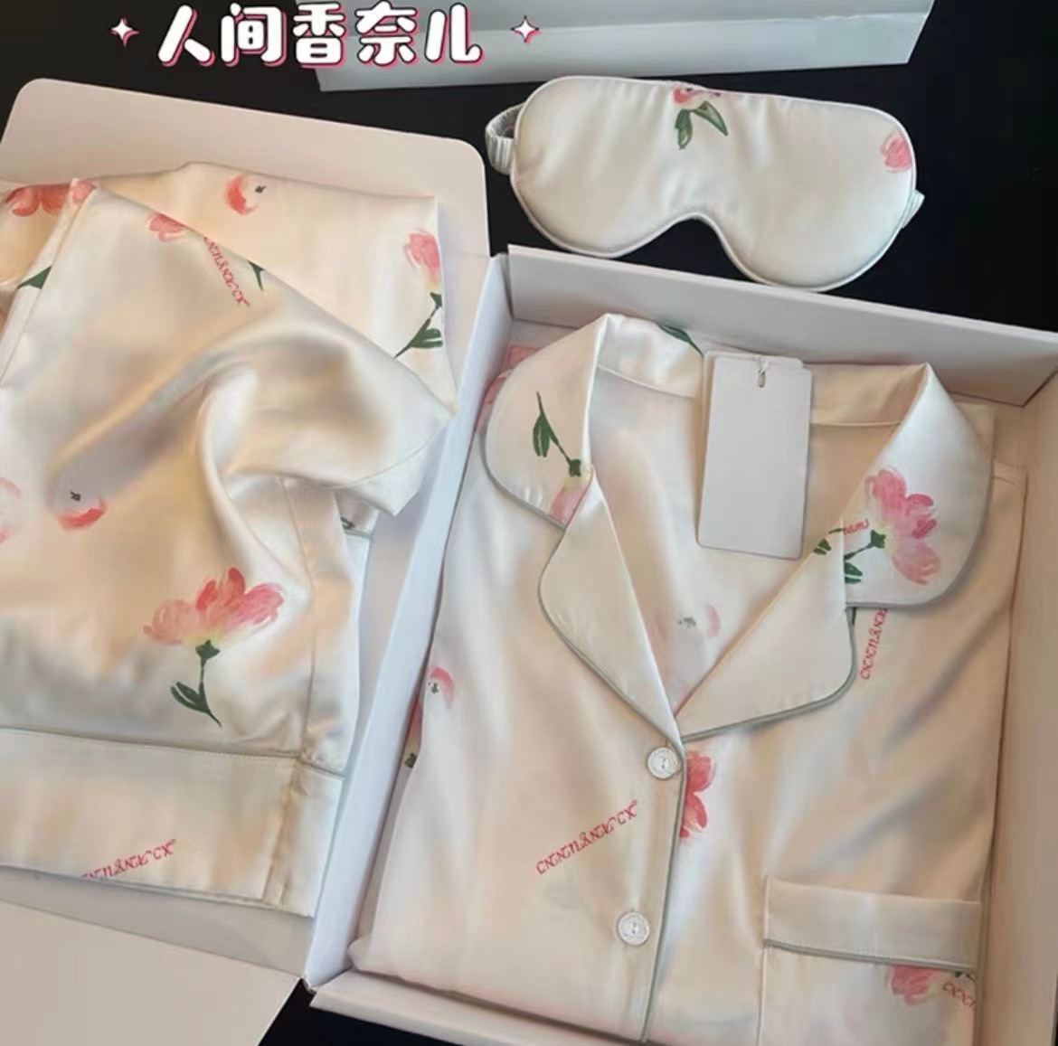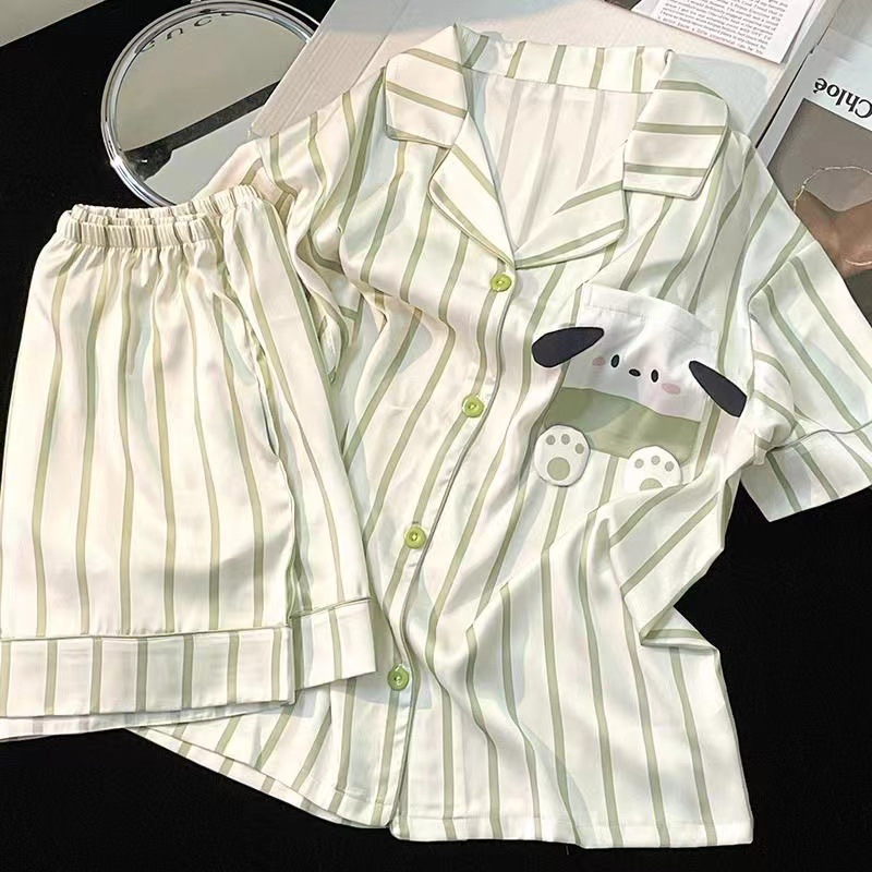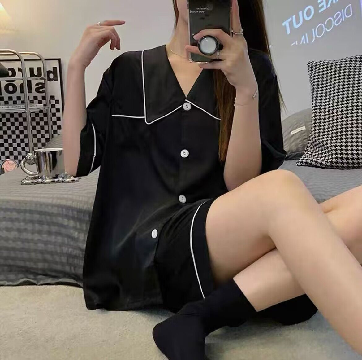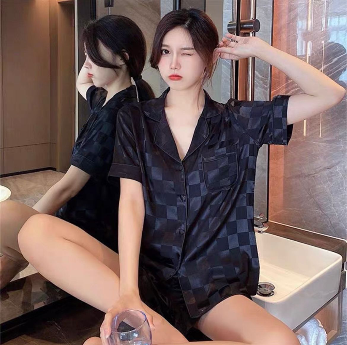 잠옷 여자 여름 아이스 실크 반팔 얇은 달콤한 귀여운 여자의 섹시한 여름 한국 스타일 홈 의류 투피스 세트스토어 가기