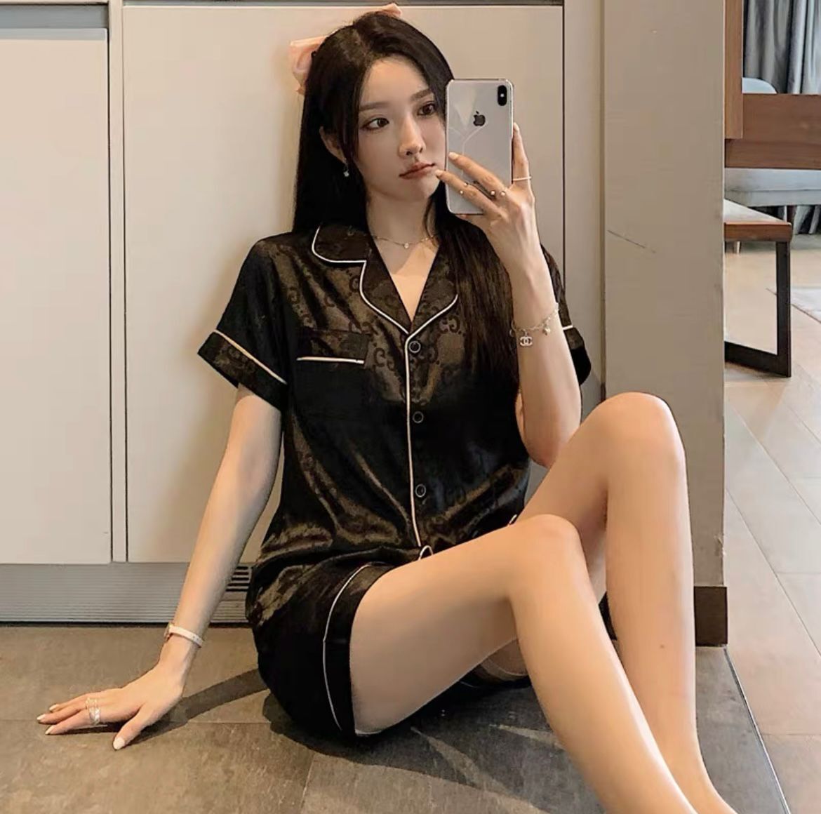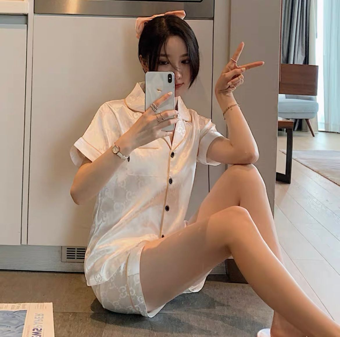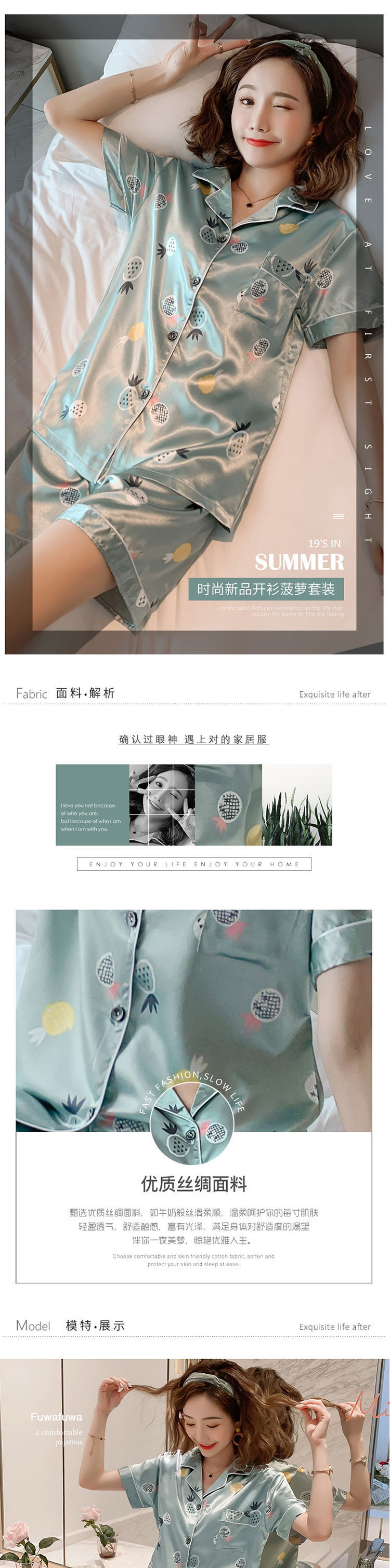 잠옷 여자 여름 아이스 실크 반팔 얇은 달콤한 귀여운 여자의 섹시한 여름 한국 스타일 홈 의류 투피스 세트
