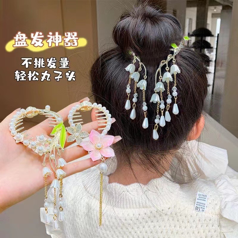 한후 백합 타셀 헤어핀 볼 헤드 고정 그립 클립 여성의 하이 엔드 센스 헤어 버클 기질 반 묶인 헤어 액세서리스토어 가기