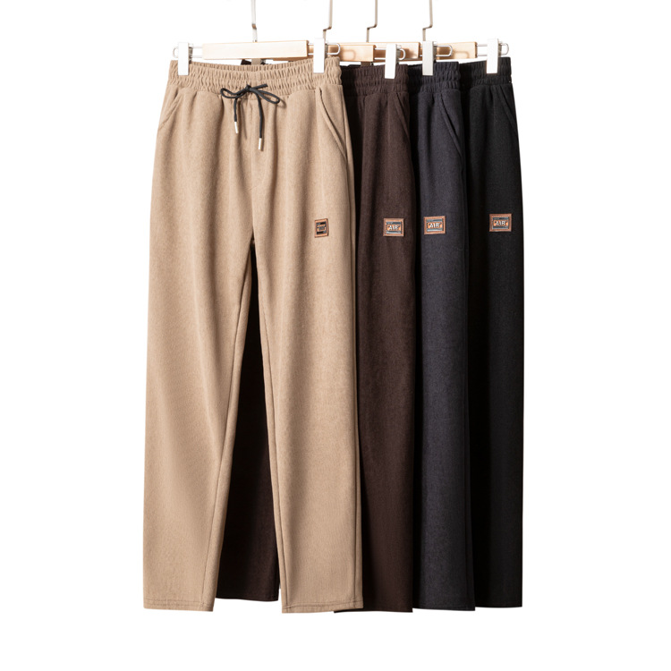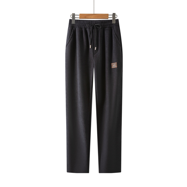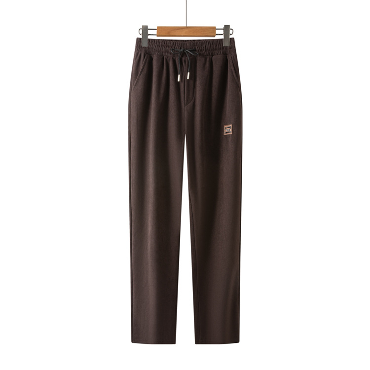 2026 봄 모델 중노년 남성용 목련벨벳 바지, 하이웨이스트, 앞단계로 묶는 끈, 스트레이트핏, 초극세 스트라이프, 루즈핏 캐주얼 바지