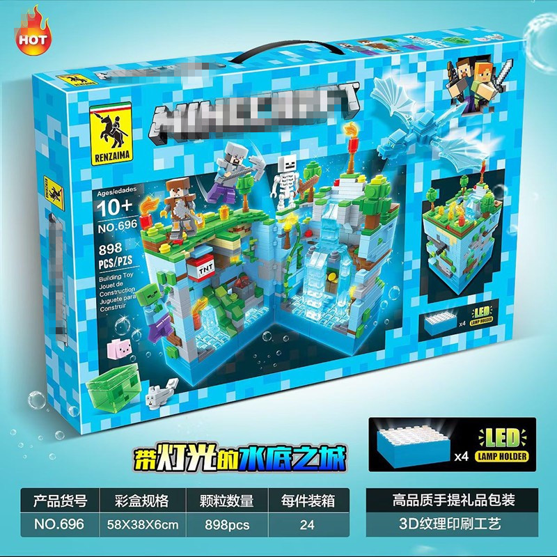 대외 무역 국경 내 그림자 도시 세계 게임 빌딩 블록 조명 작은 입자 조립 건물 블록 장난감스토어 가기