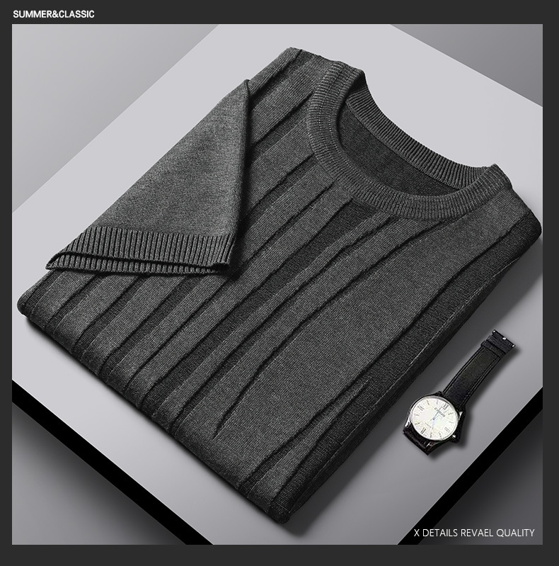 가을과 겨울 반소매 스웨터 남자 반소매 한국 스타일 얇은 니트 스웨터 트렌디 라운드 넥 슬림 핏 독특한 청소년베이스 셔츠