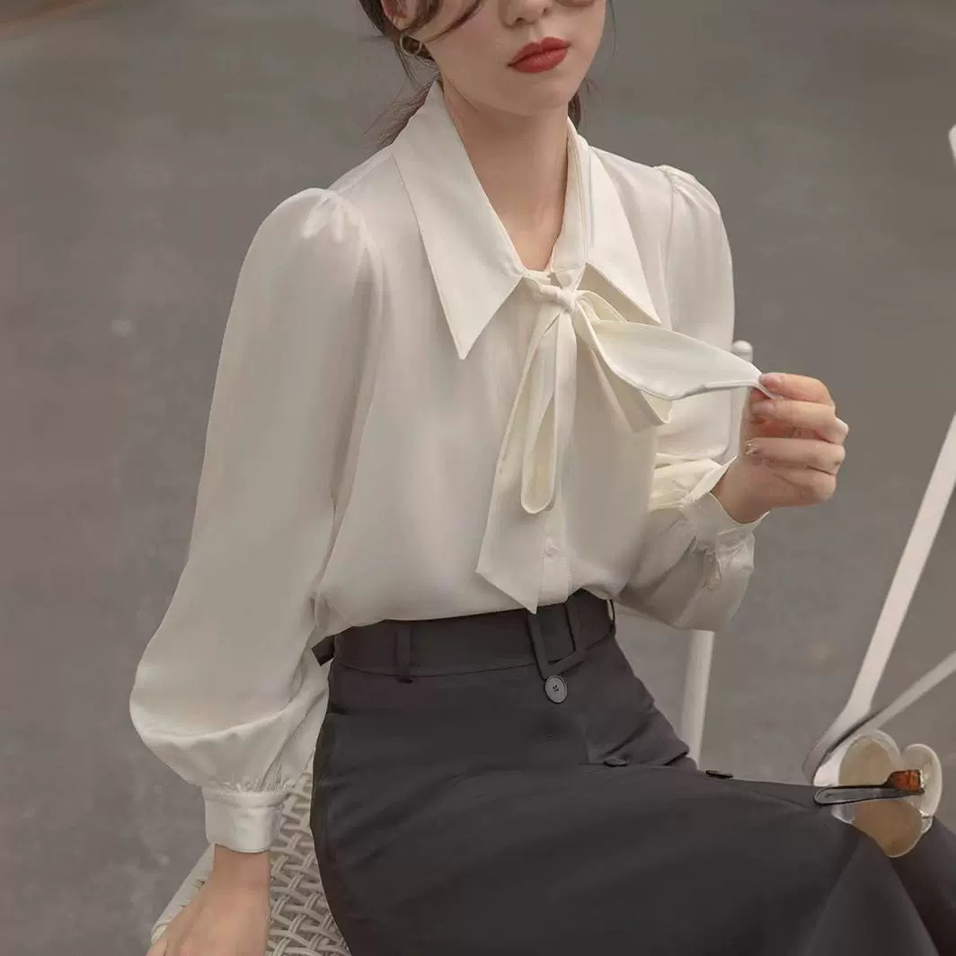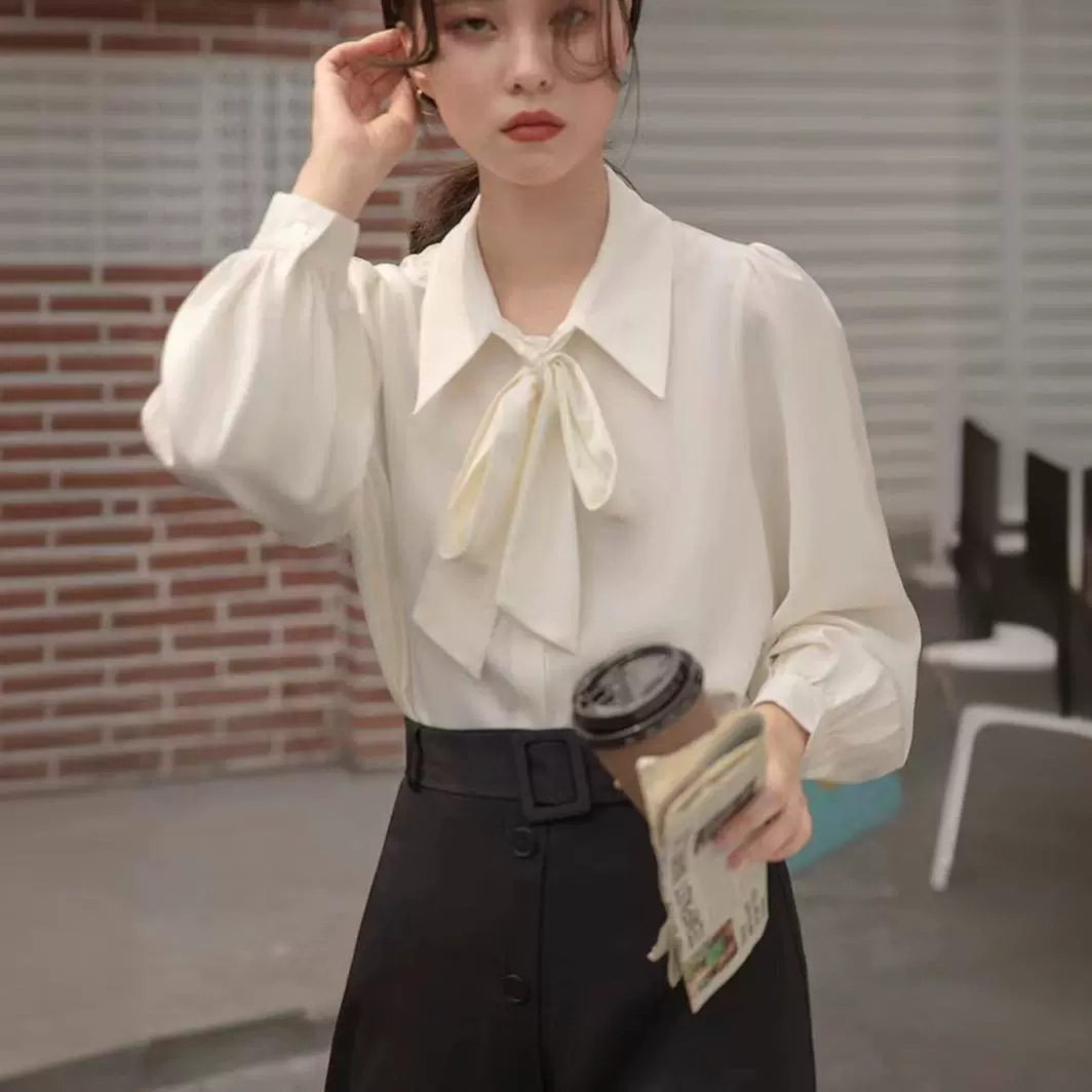 한국 스타일 랜턴 슬리브 보우 셔츠 내부 셔츠 2024 봄 여름 원피스 레이스 업 디자인 센스 전문 탑