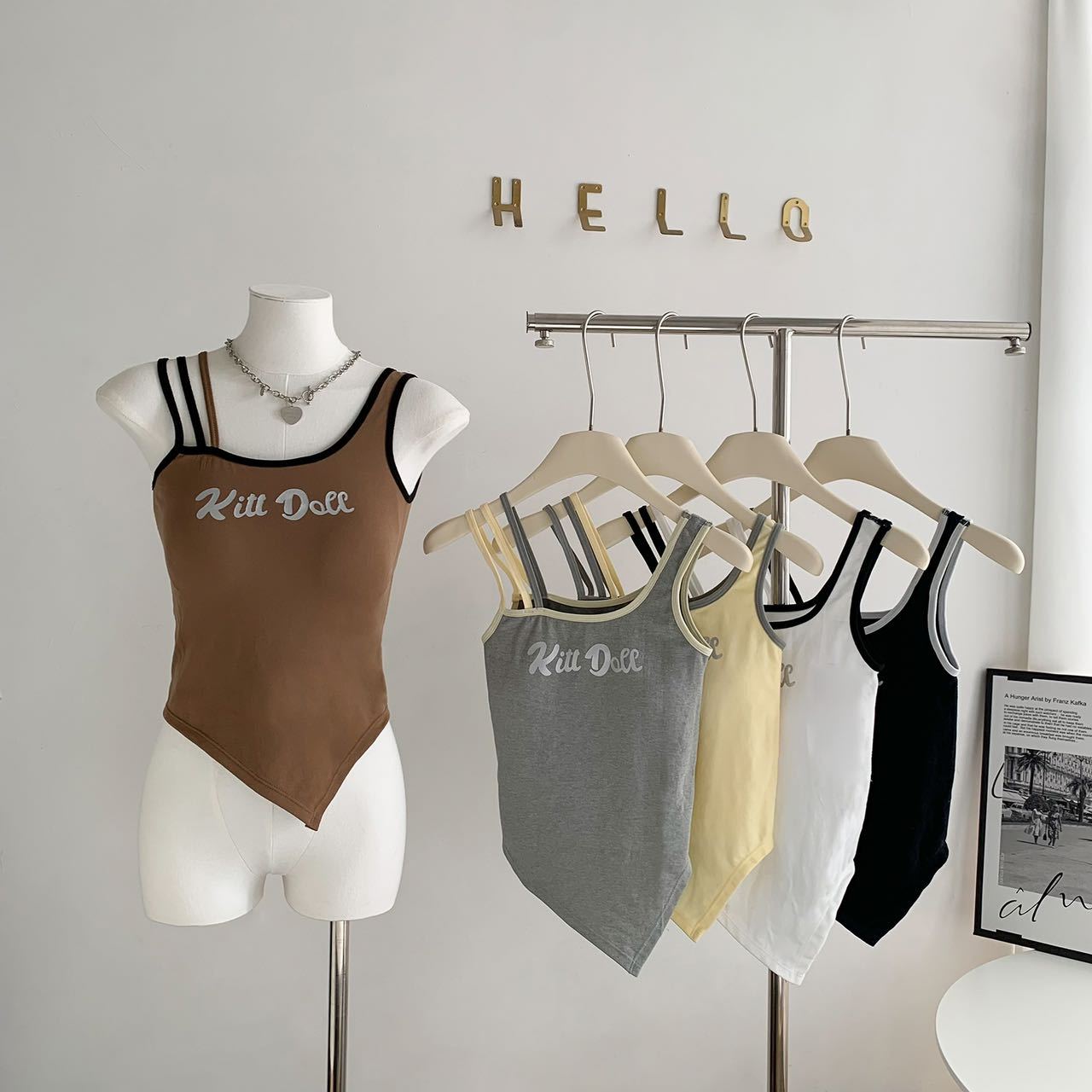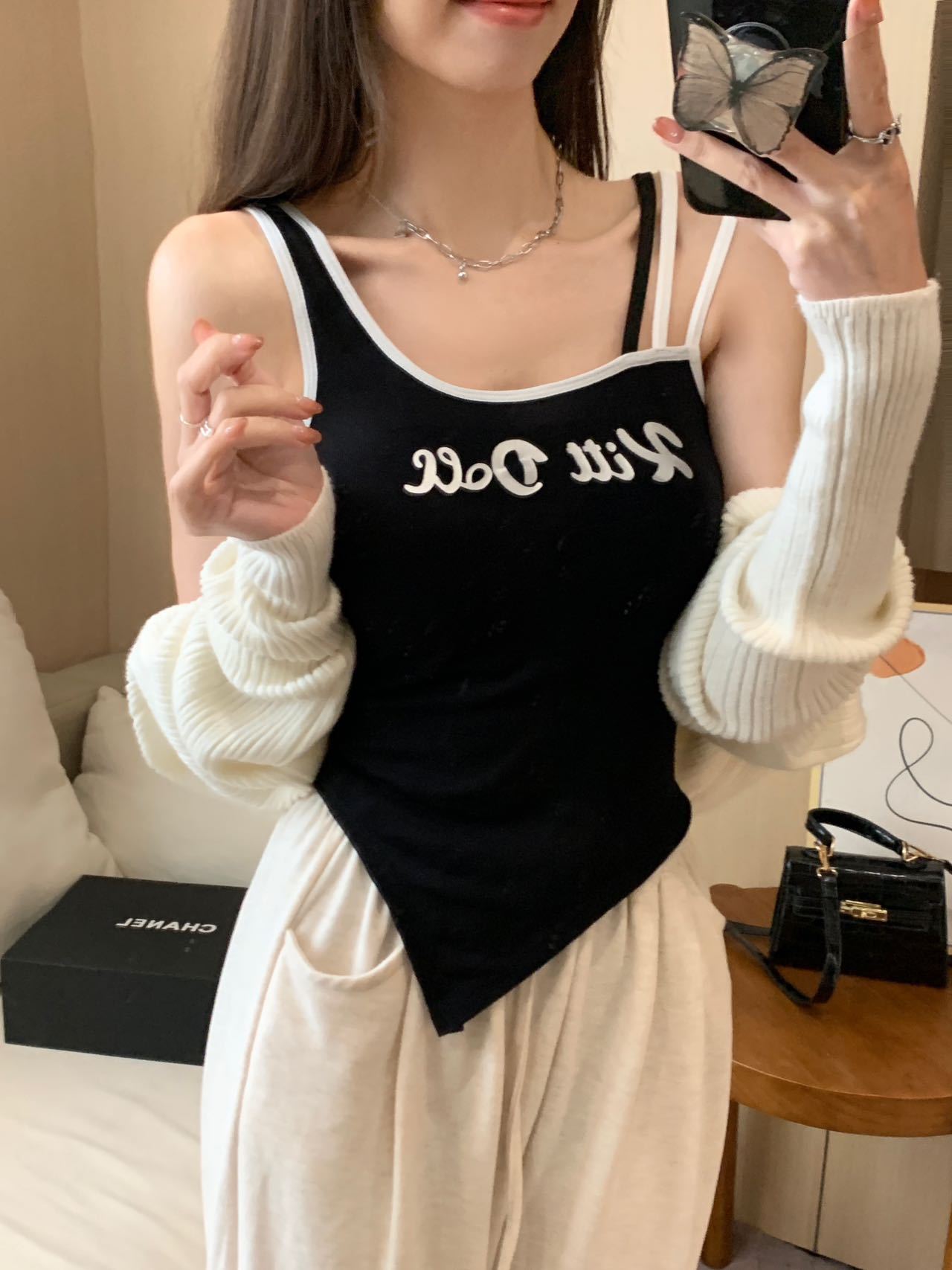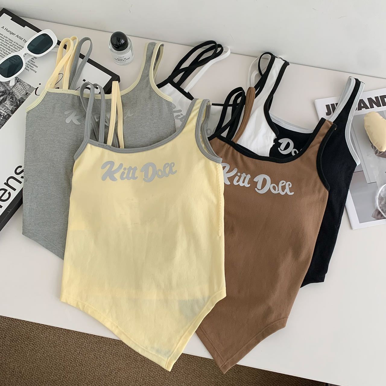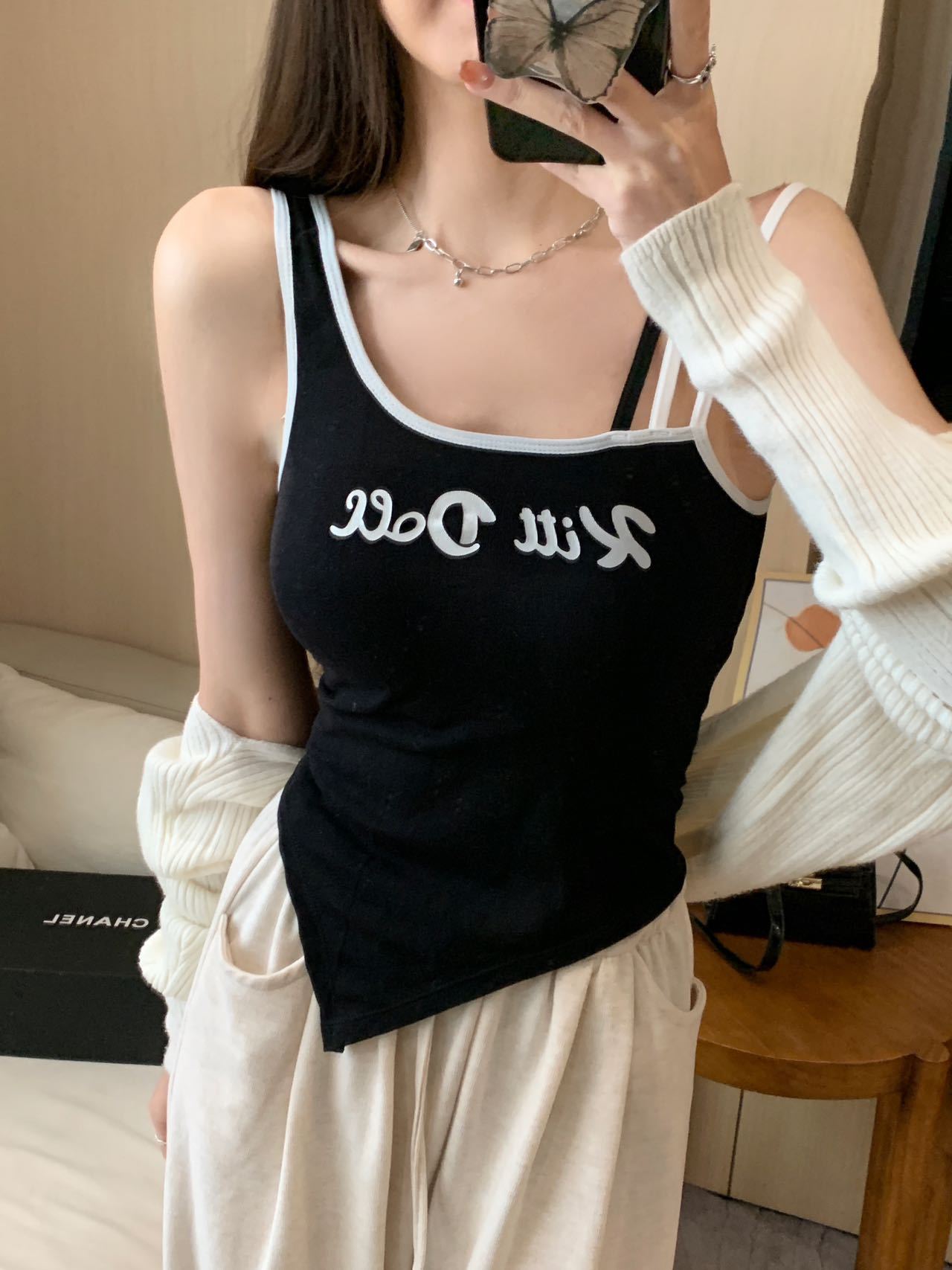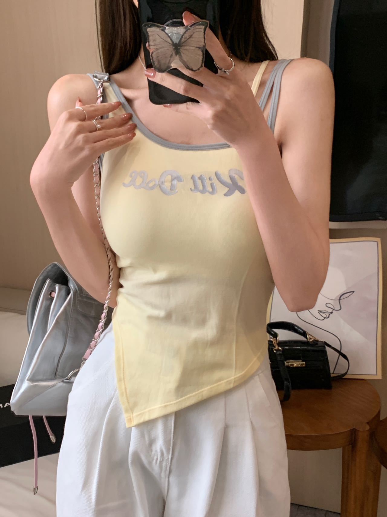 2071 # 원활한 섹시 달콤한 틈새 디자인 조끼 슬링 여성의 봄 슬리밍 하이 엔드 조커 쇼트스토어 가기