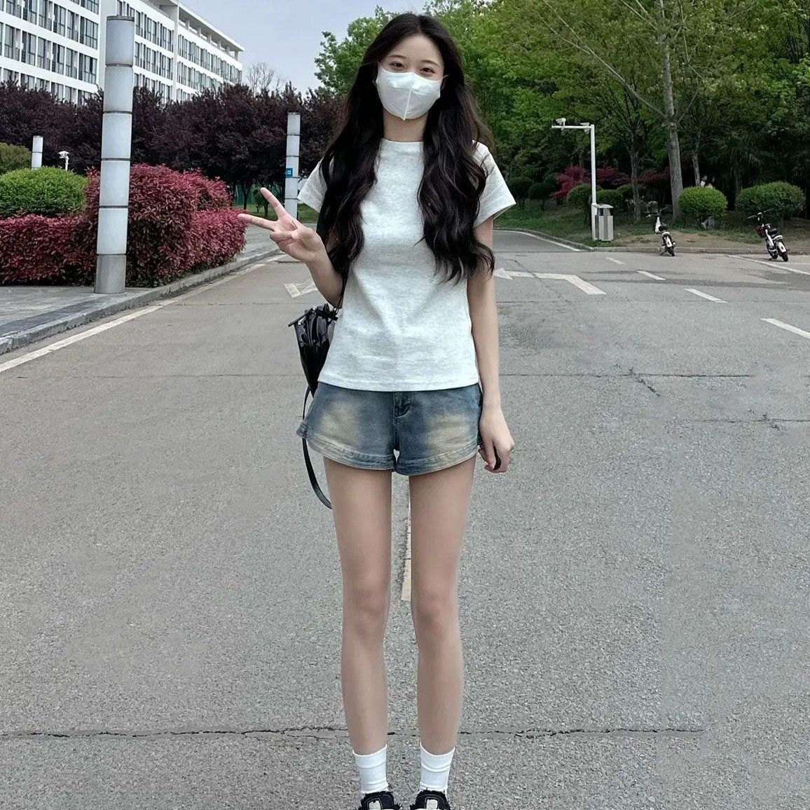 아메리칸 스타일 레트로 데님 반바지 여성 여름 2024 새로운 디자인 센스 하이 웨이스트 스트레이트 슬리밍 A-모양의 와이드 레그 핫 팬츠스토어 가기
