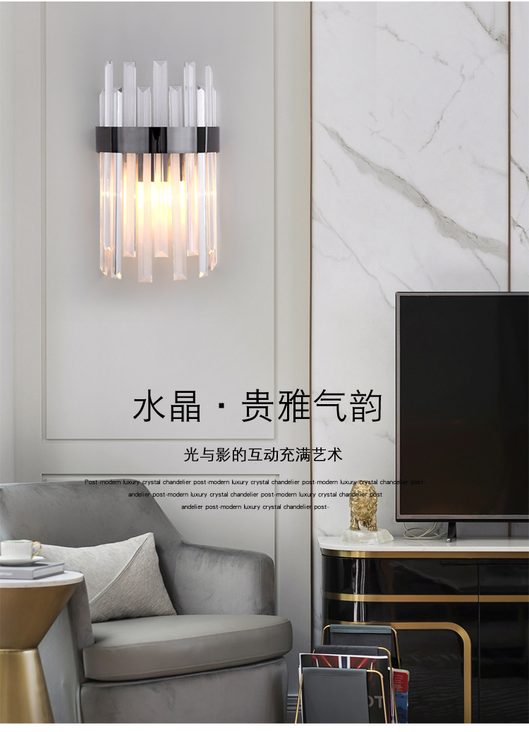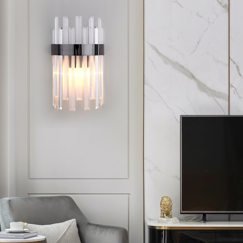 철 아트 룸 라이트 럭셔리 포스트 모던 인터넷 유명 침실 침실 현대 간단한 거실 배경 벽 장식 크리스탈 벽 램프