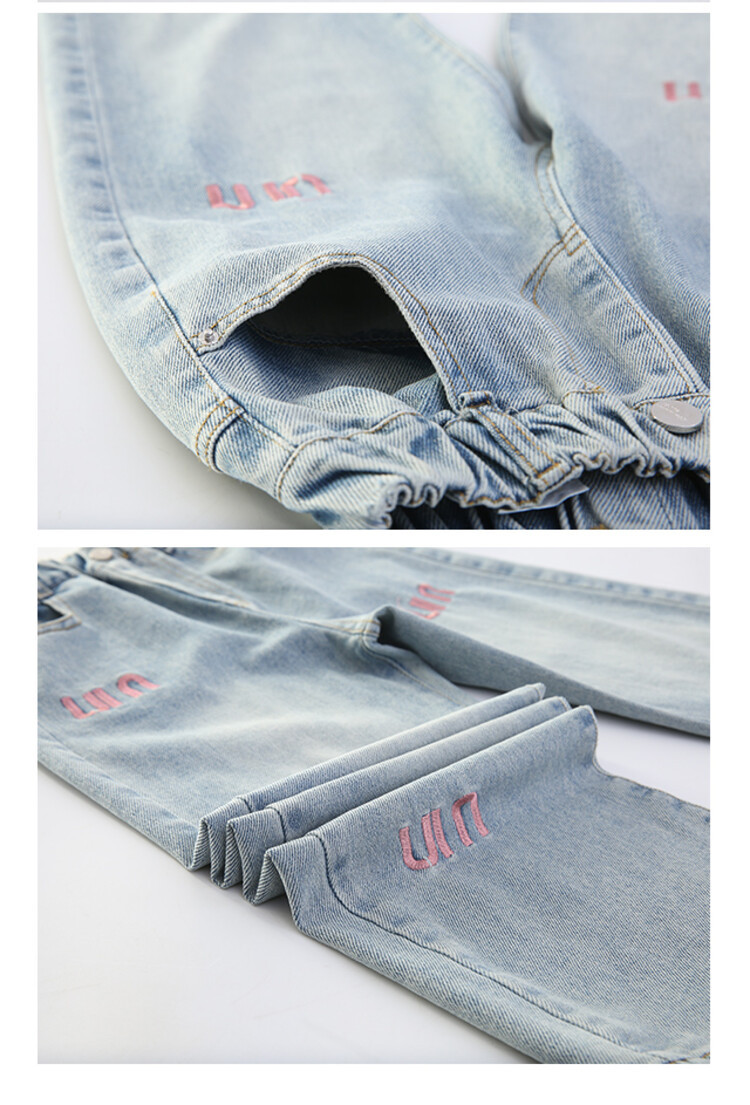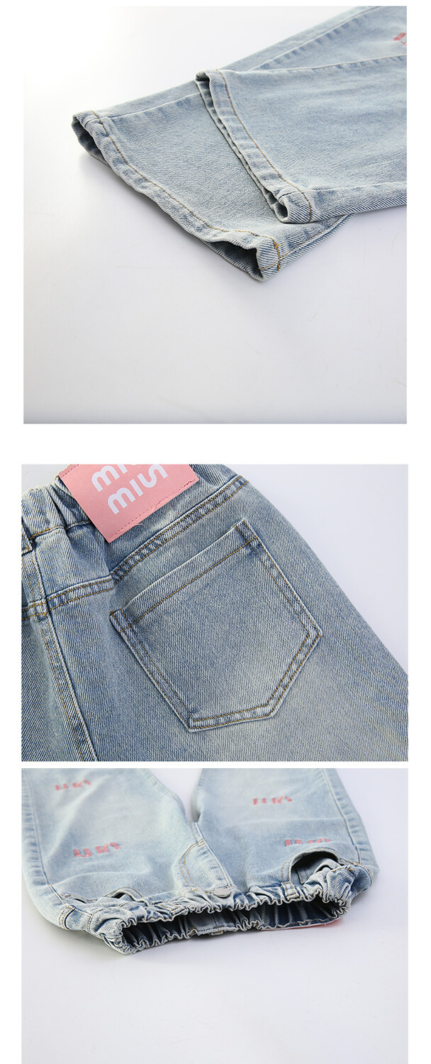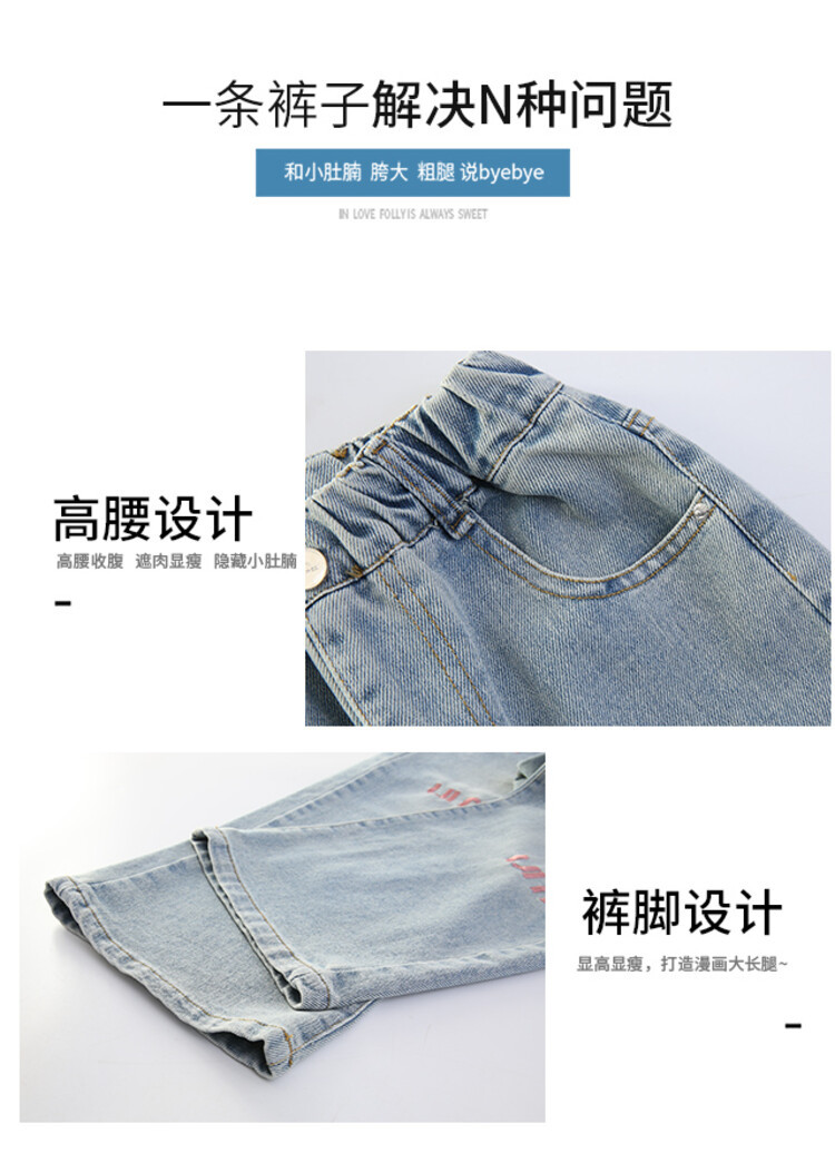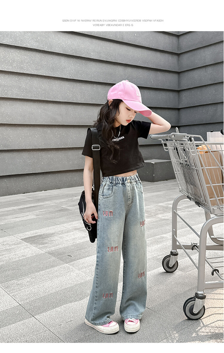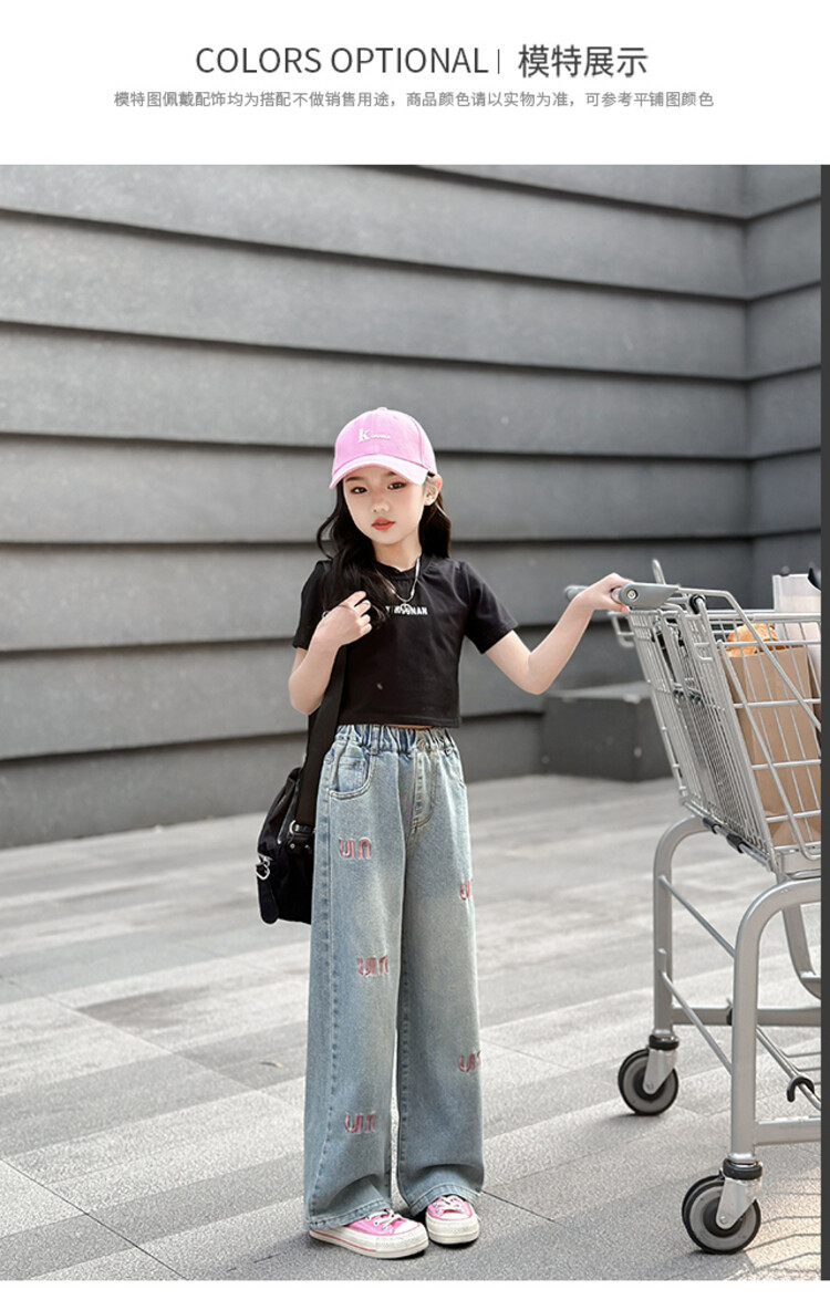 소녀 바지 봄과 가을 외부 착용 2024 새로운 스타일 중대형 어린이 캐주얼 스트레이트 와이드 다리 느슨한 봄 청바지스토어 가기