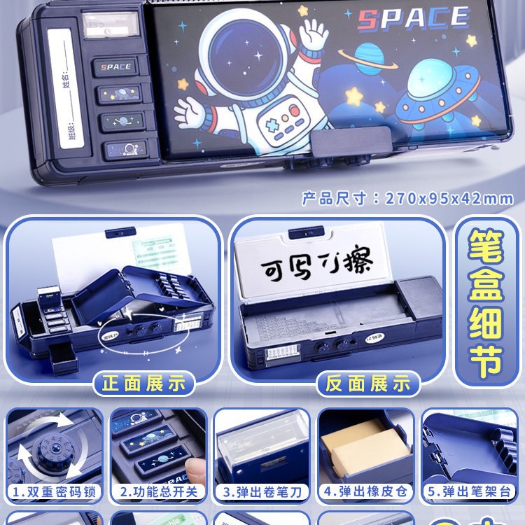 비밀번호 잠금 문구 상자 필통 소년 다기능 블랙 기술 초등학생 필통 소년 블루스토어 가기