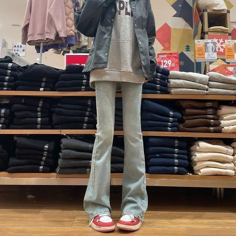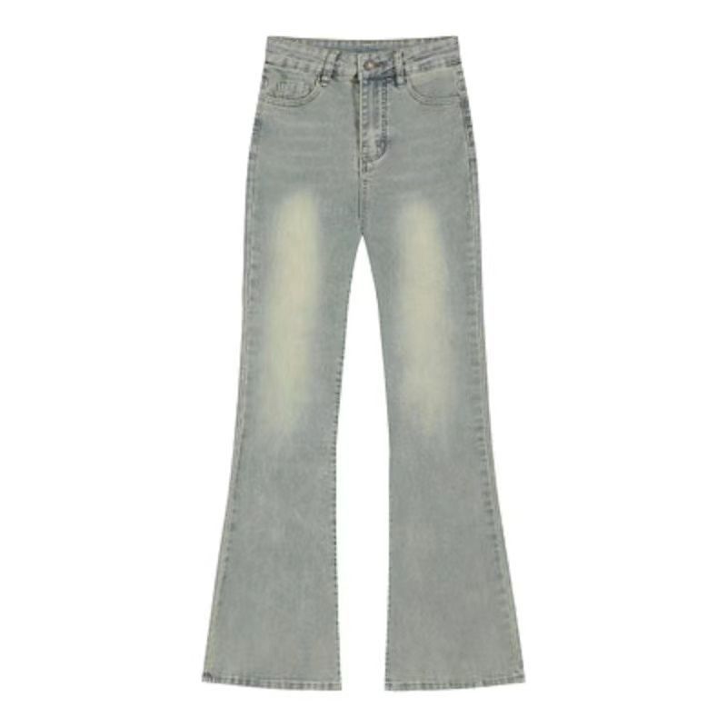 미국식 노란색 진흙 염색 마이크로 라르 청바지 높은 허리 키가 큰 슬리밍 여성 학생을위한 구식 복고풍 밝은 색 바지스토어 가기
