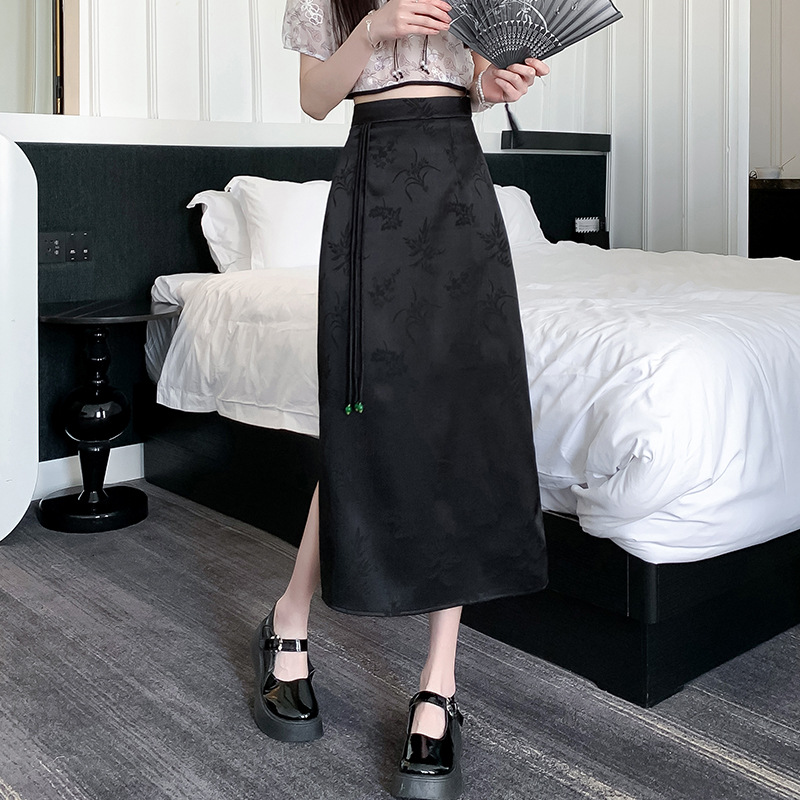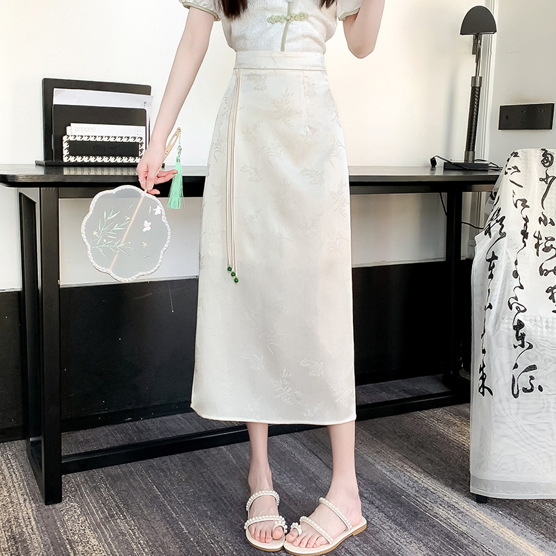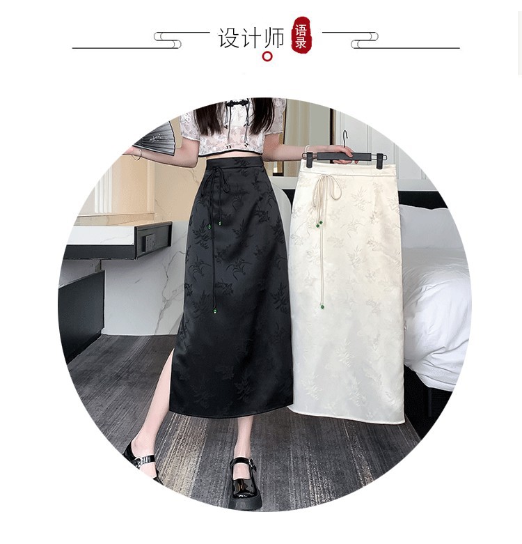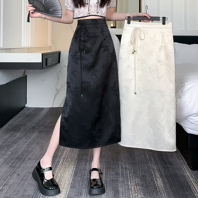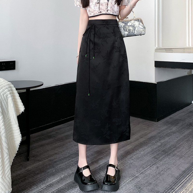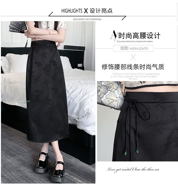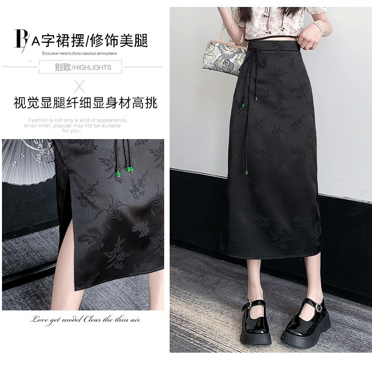 실제 비디오 2024 레트로 틈새 민족 스타일 높은 허리 스커트 숙녀 중간 길이의 힙합 커버 A-라인 원피스스토어 가기