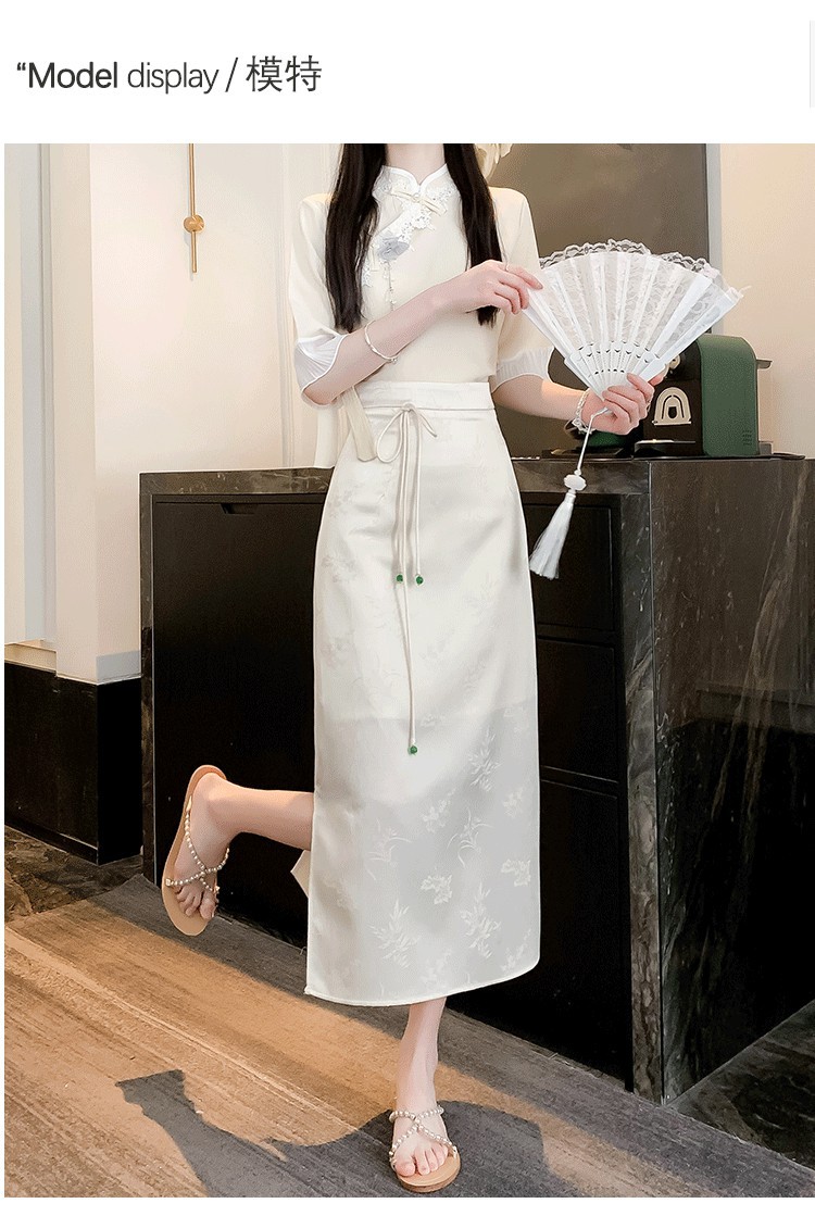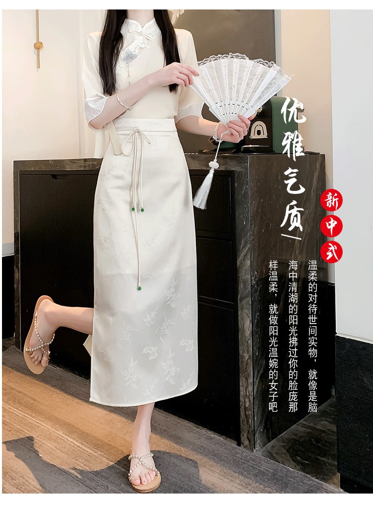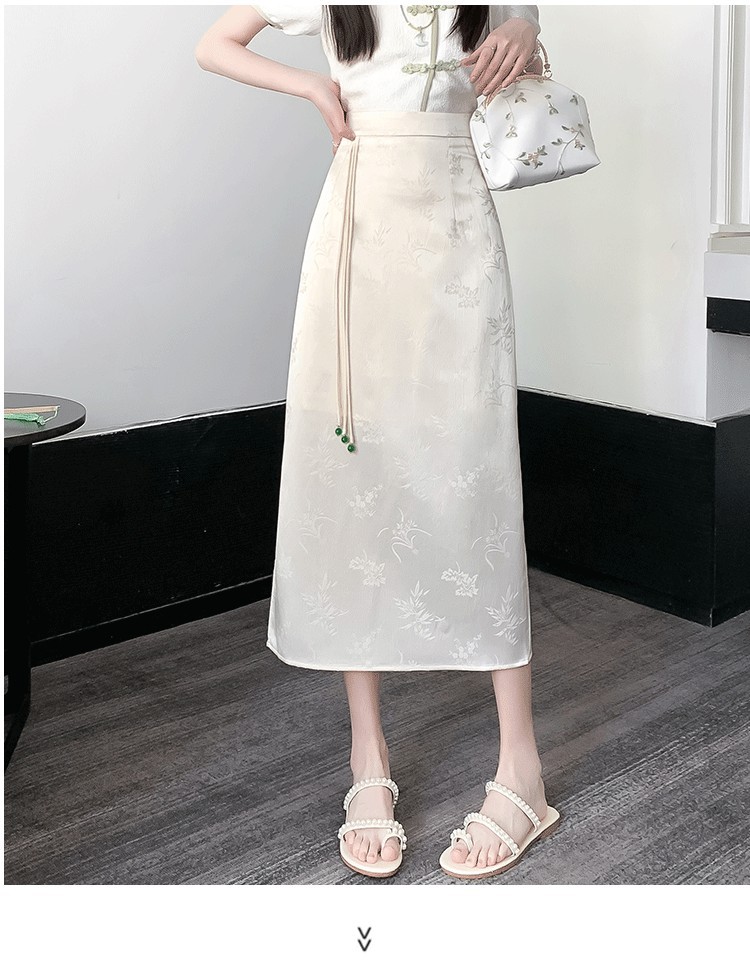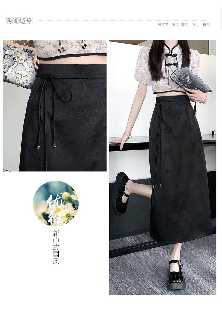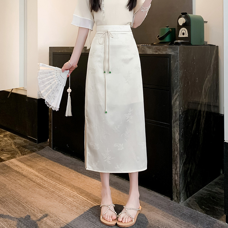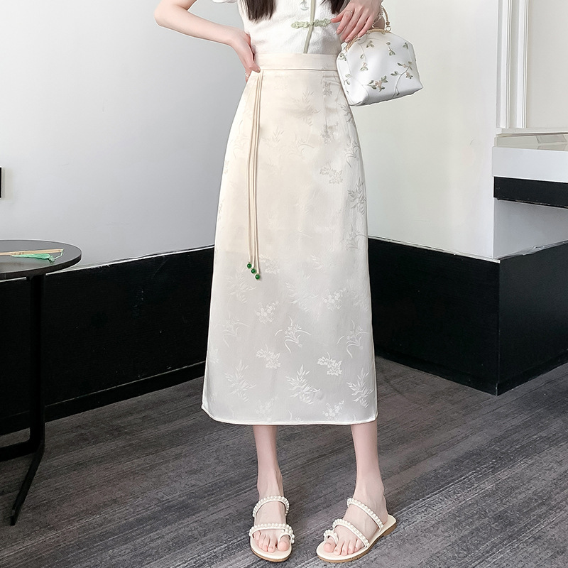 실제 비디오 2024 레트로 틈새 민족 스타일 높은 허리 스커트 숙녀 중간 길이의 힙합 커버 A-라인 원피스스토어 가기