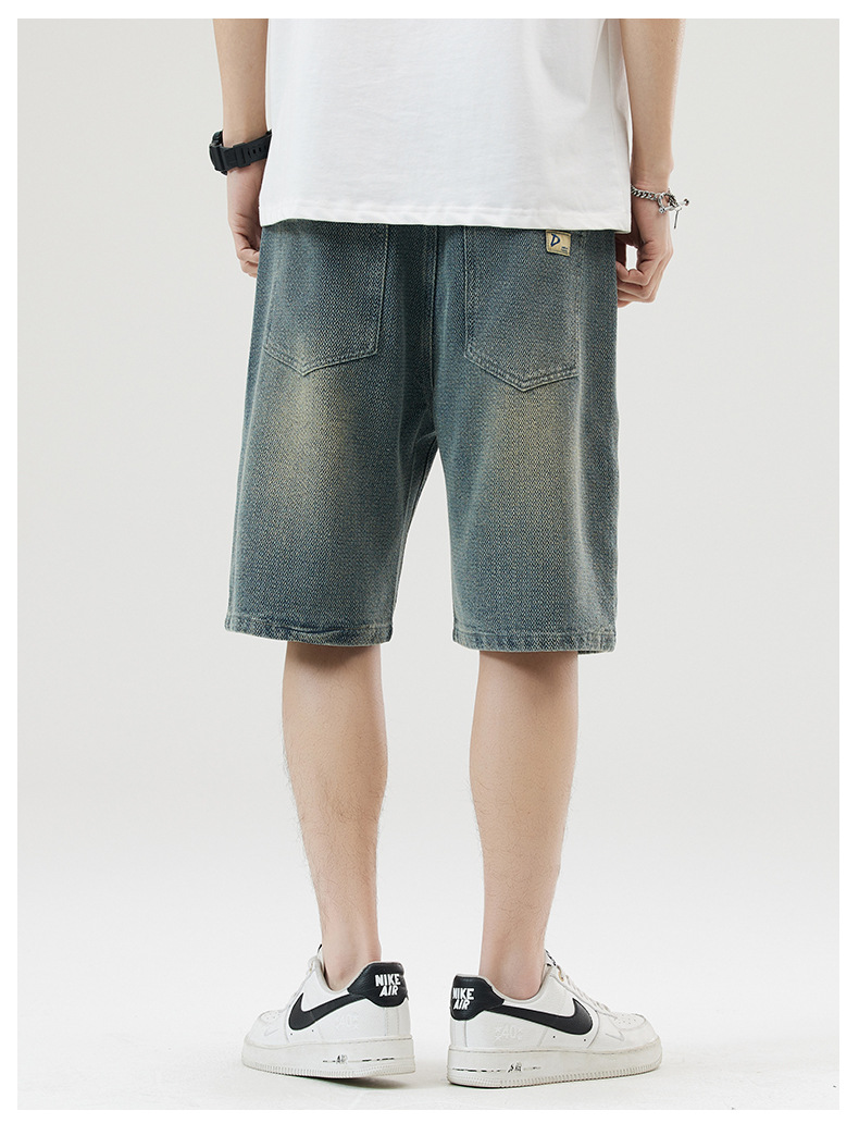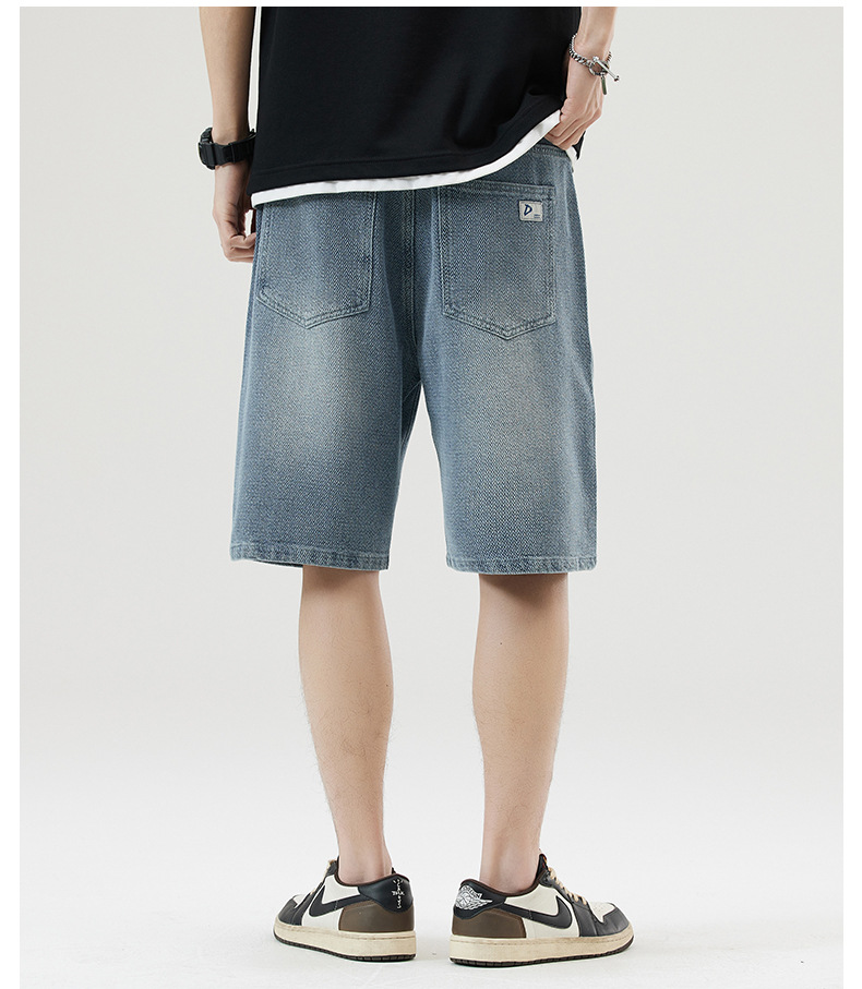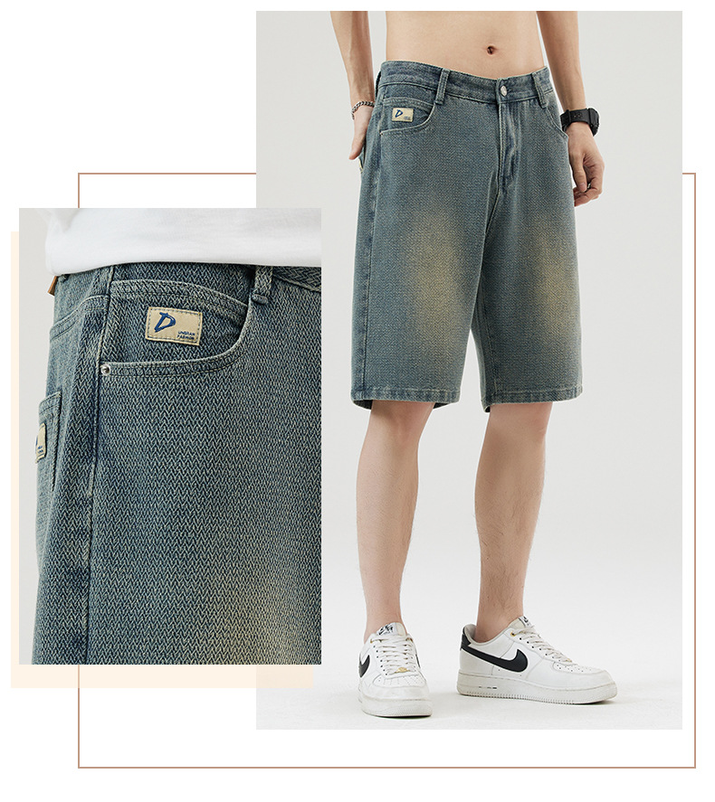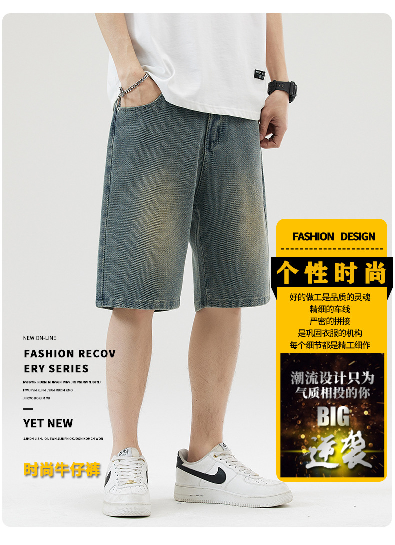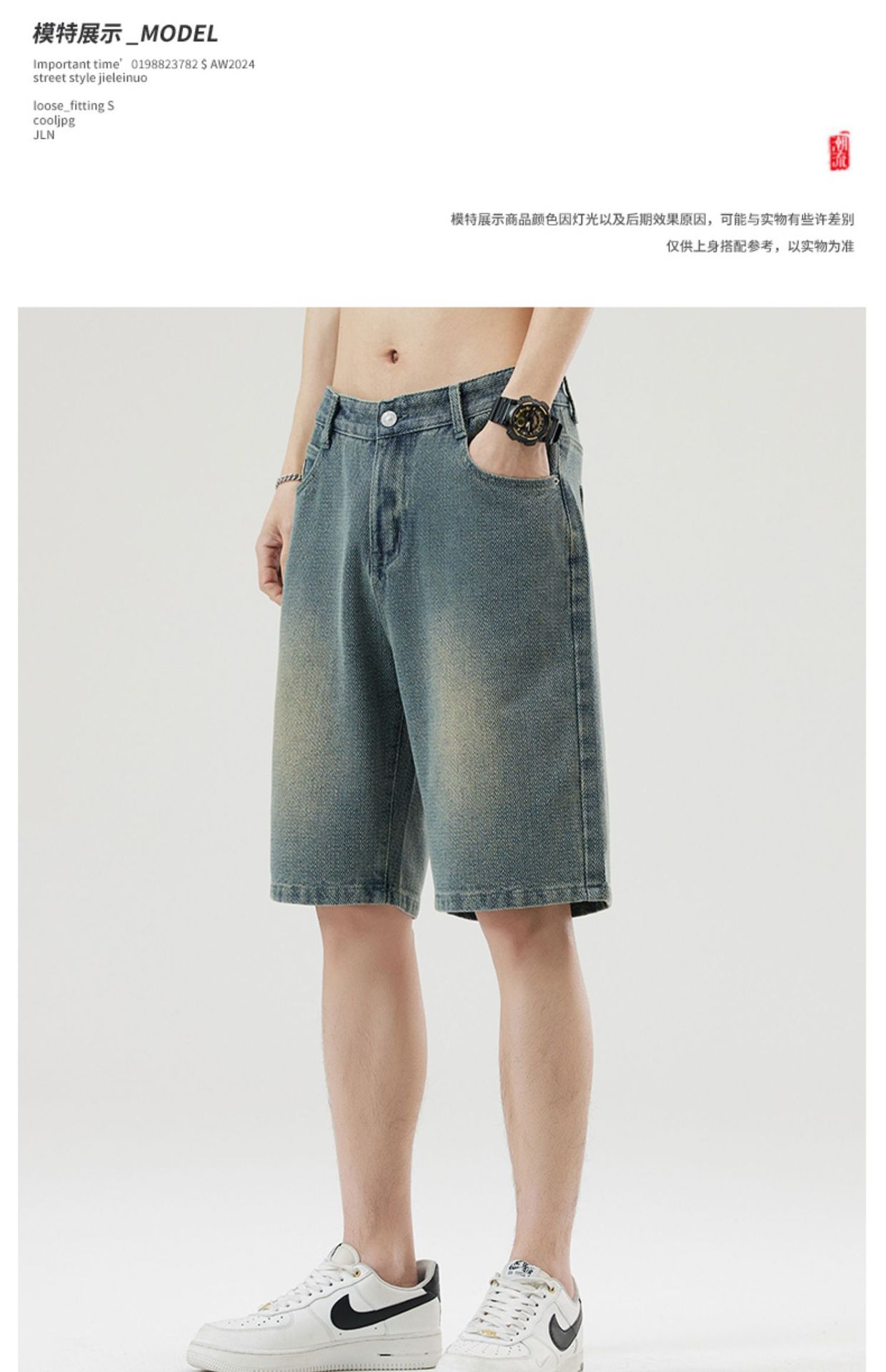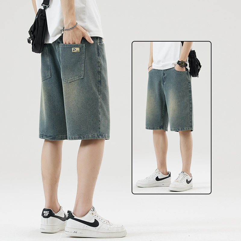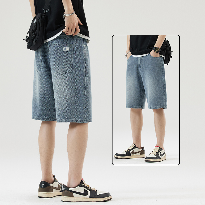여름 얇은 데님 반바지 남성 스타 패턴 유행 패션 브랜드 느슨한 미국 스타일 외부 착용 캐주얼 바지스토어 가기
