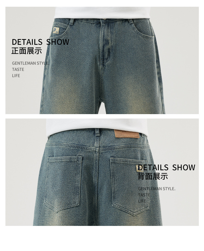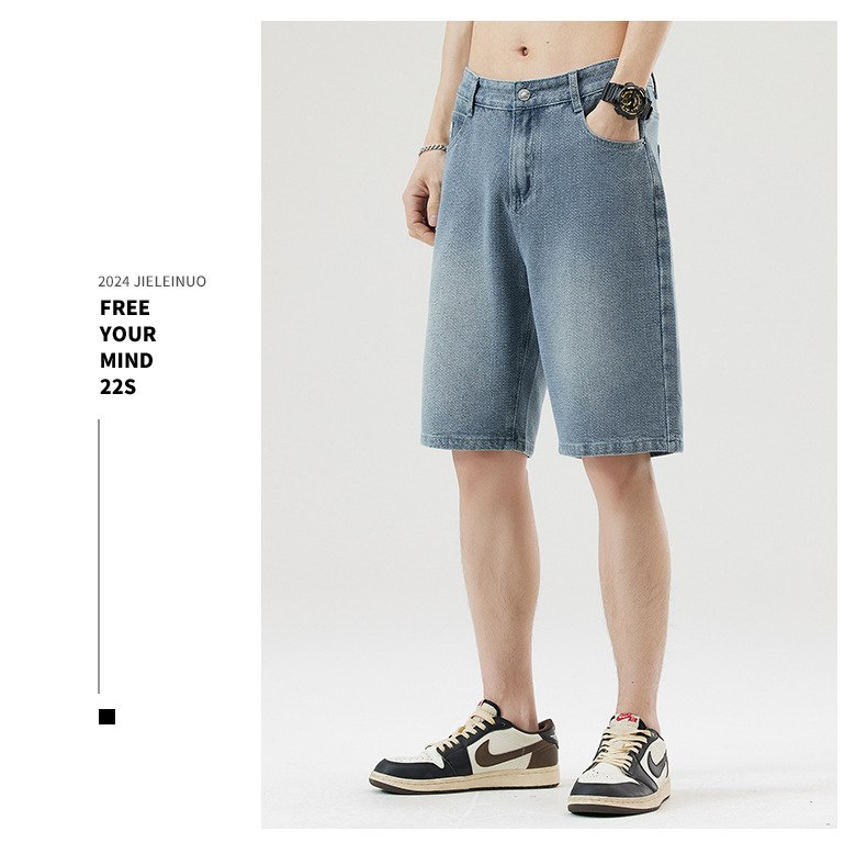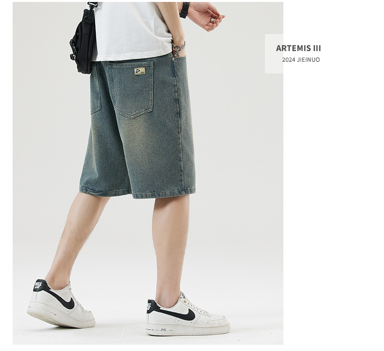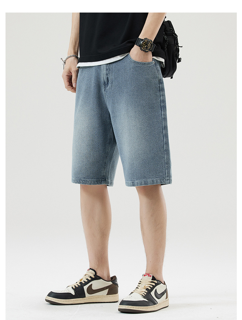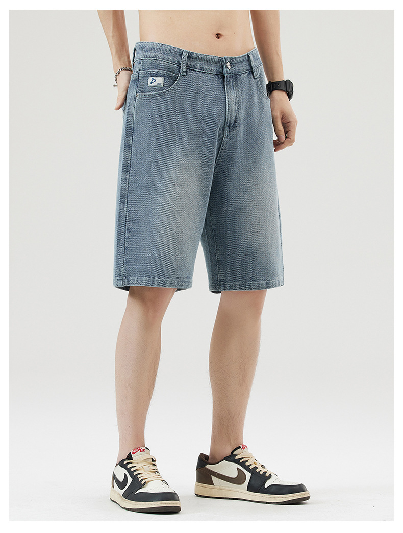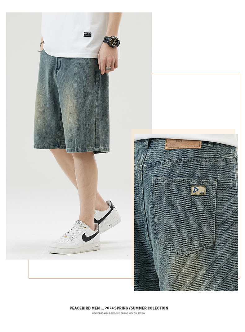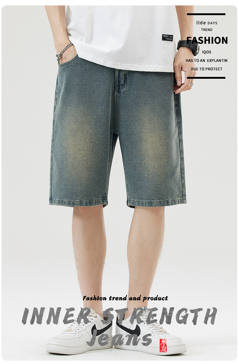 여름 얇은 데님 반바지 남성 스타 패턴 유행 패션 브랜드 느슨한 미국 스타일 외부 착용 캐주얼 바지스토어 가기