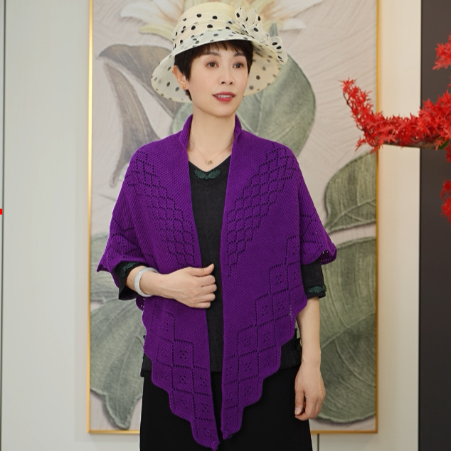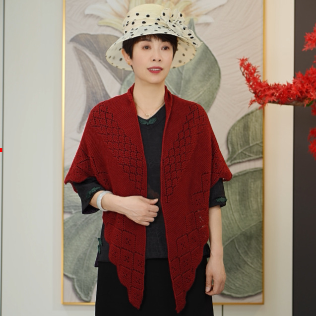 • 부르고뉴-할로우 니트 삼각형 목도리