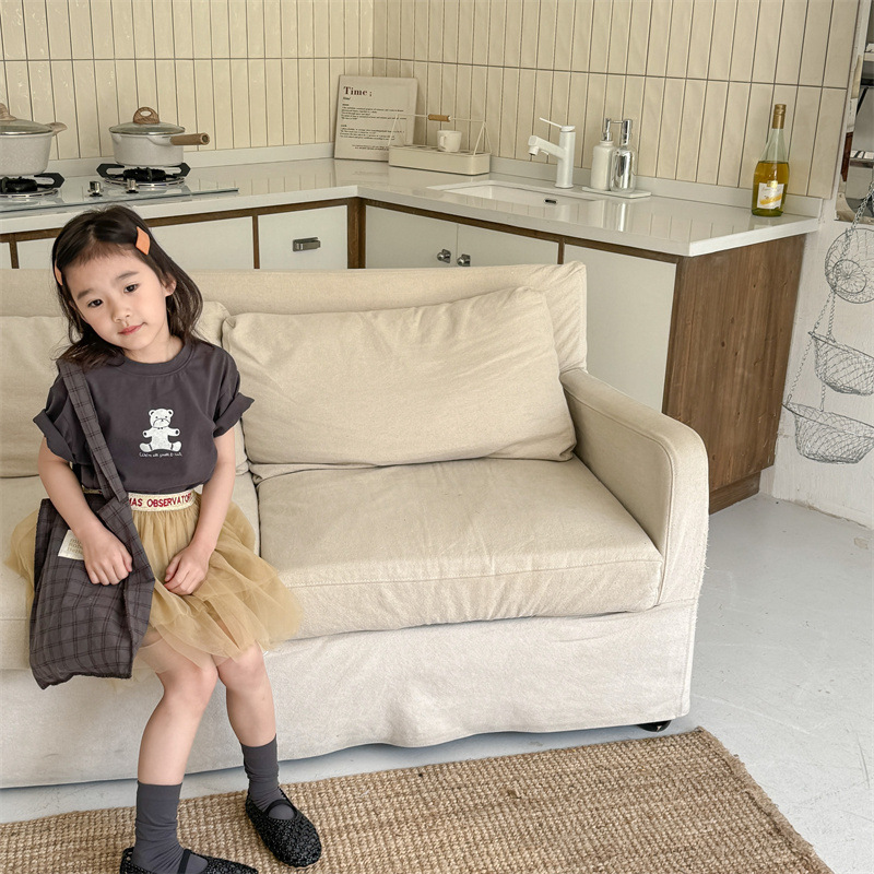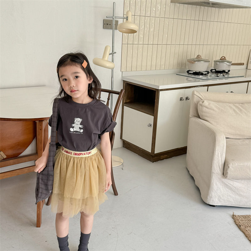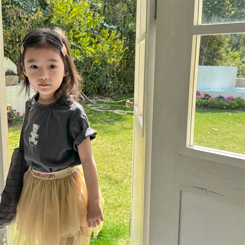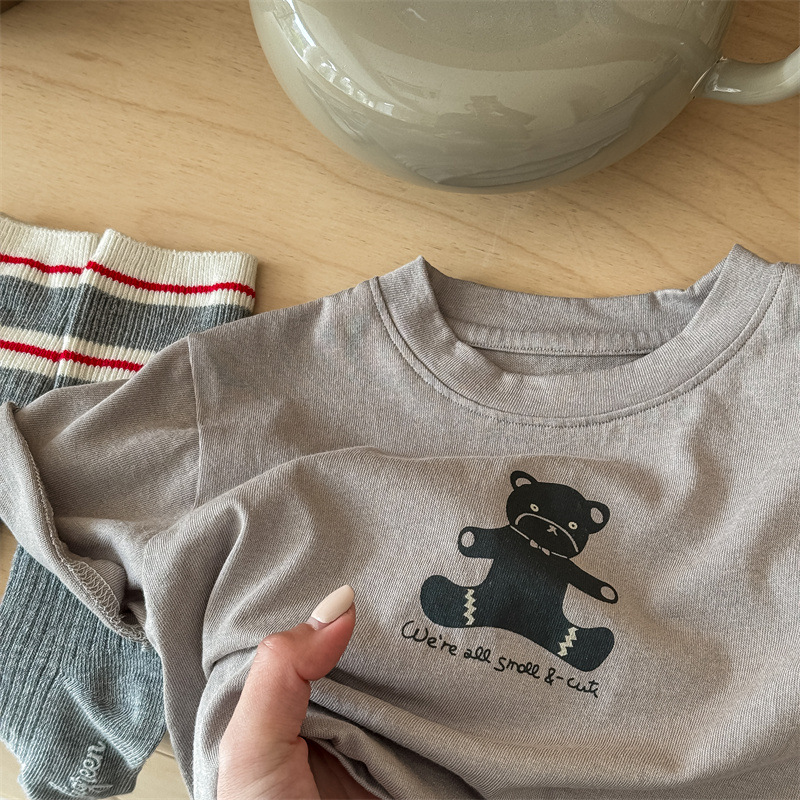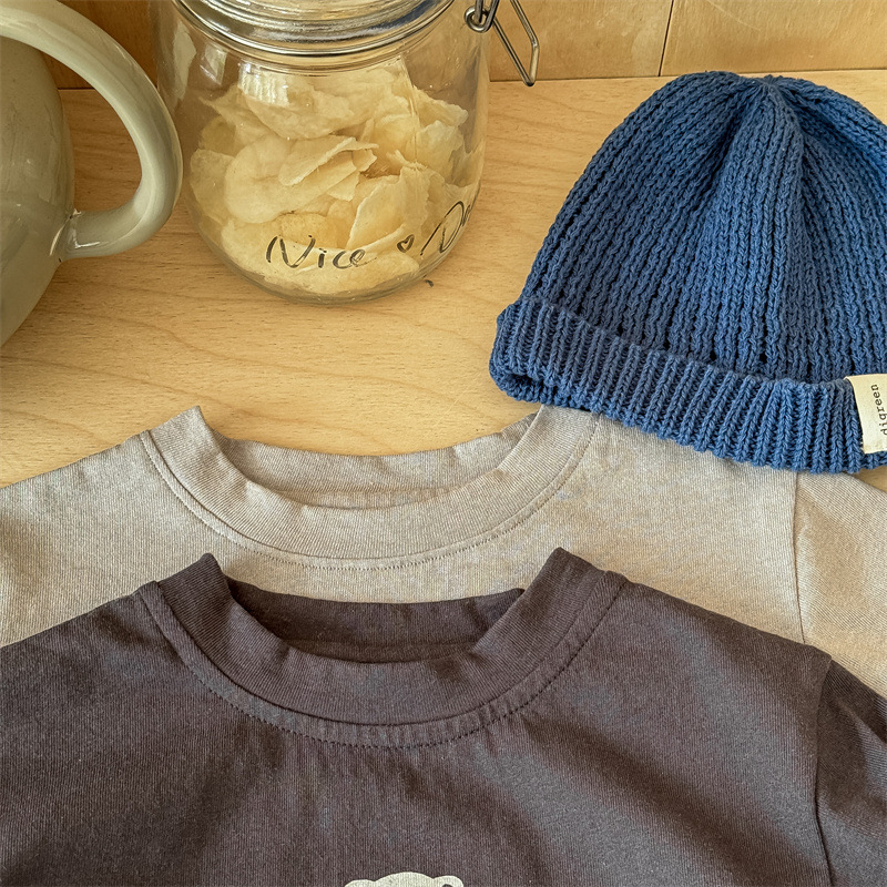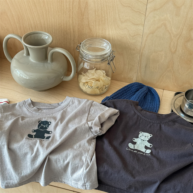 2025 Huzhou Zhili 아동 의류 여름 어린이 한국어 인쇄 반팔 티셔츠 소녀 소년 바닥 셔츠 5227