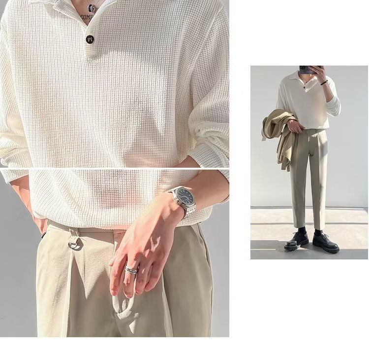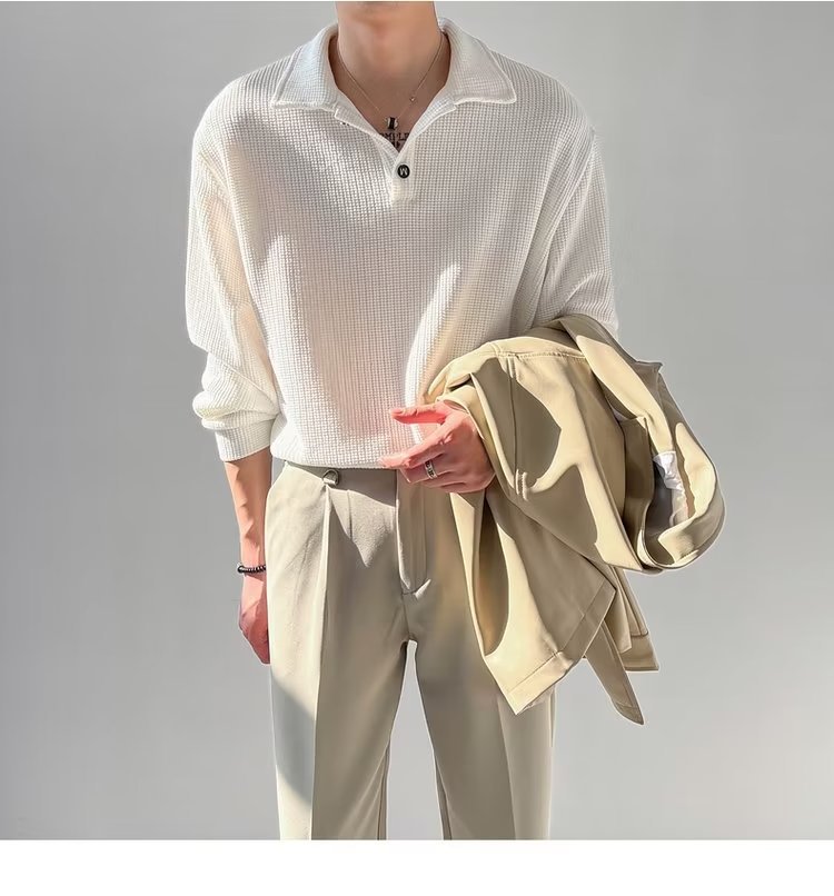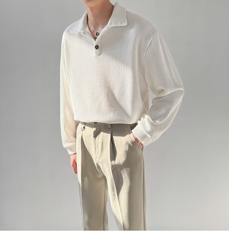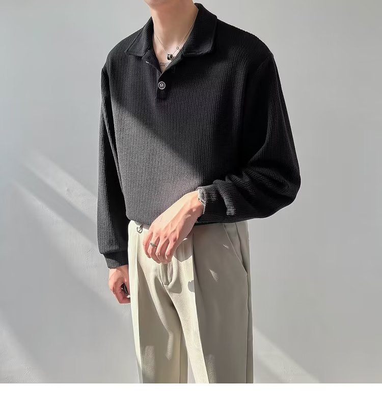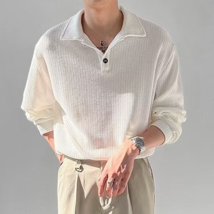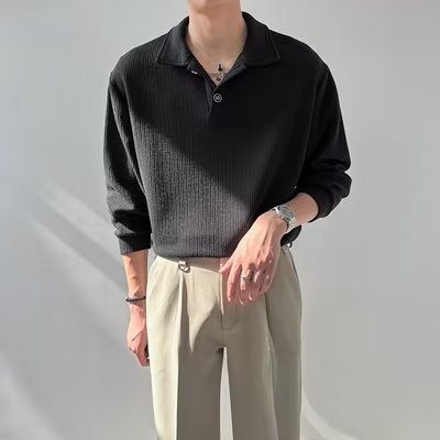 라이트 성숙한 스타일 남성용 긴팔 폴로 셔츠 2023 여름 트렌디 브랜드 반소매 티셔츠 남성용 한국 스타일 래그 칼라 티셔츠