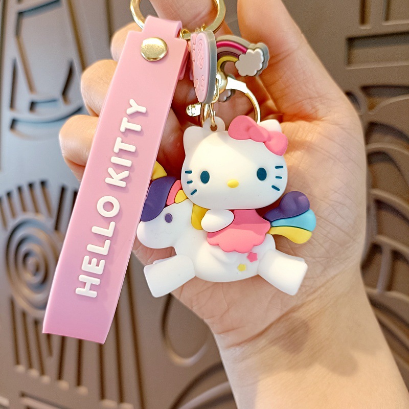 산리오 유니콘 만화 키 체인 귀여운 헬로 키티 인형 학교 가방 펜던트 인형 기계 작은 선물스토어 가기