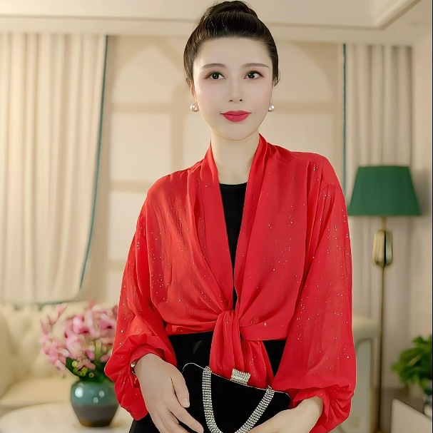 • 레드 스팽글 넓은 소매