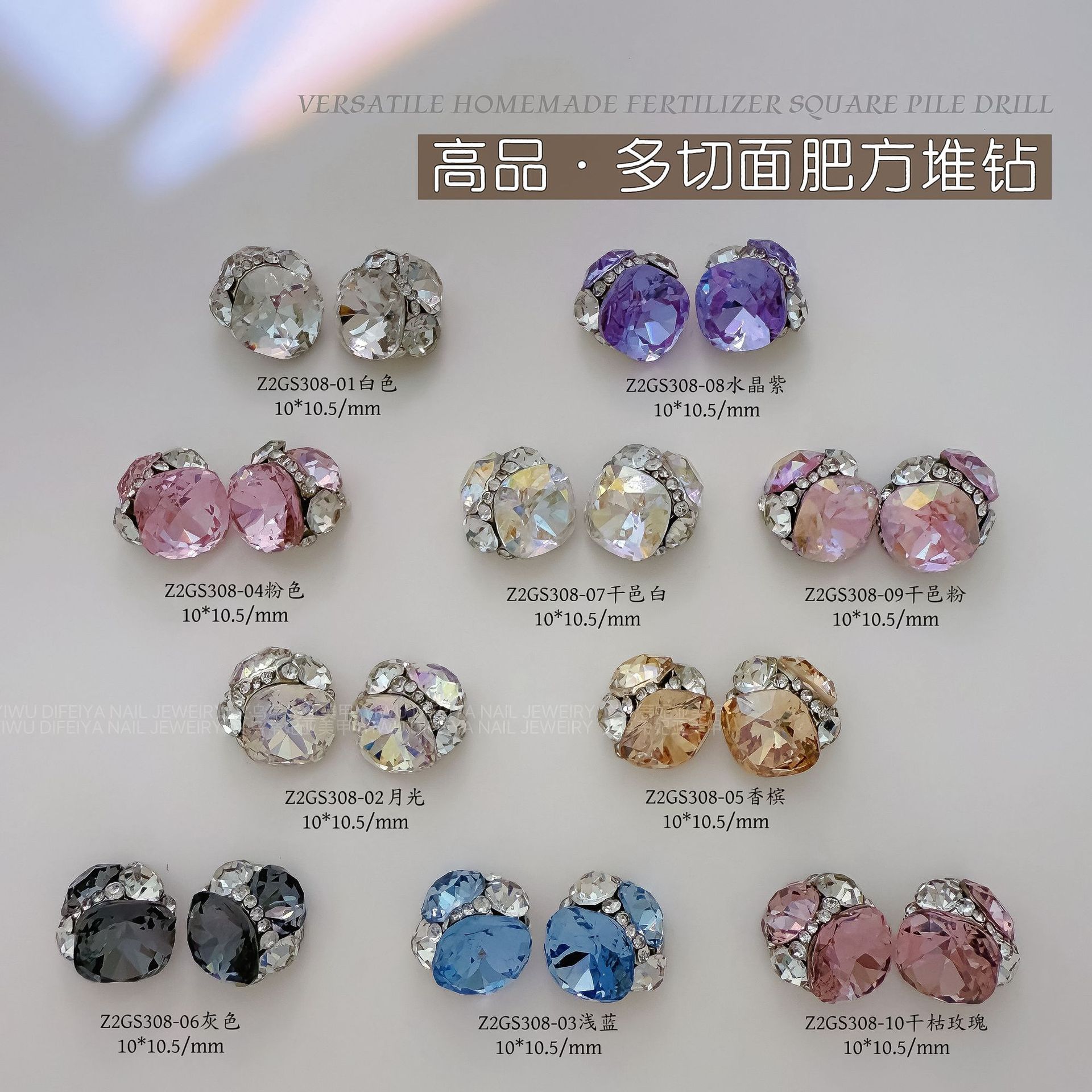 폭발적인 고품질 지방 사각형 더미 다이아몬드 네일 아트 쥬얼리 슈퍼 플래시 K9 다각적 지방 사각형 투명 흰색 네일 아트 다이아몬드 공 도매