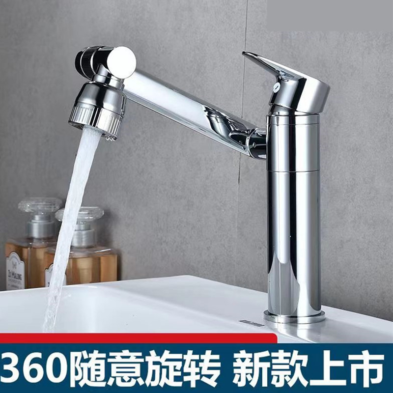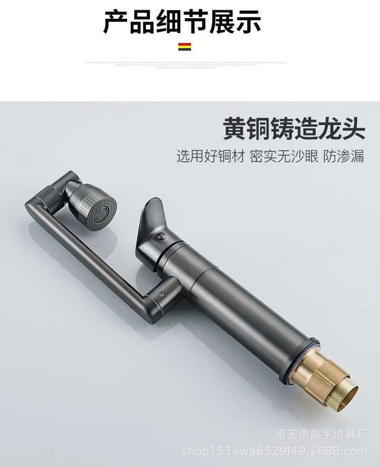 모든 구리 행운의 고양이 유니버설 총 회색 욕실 분지 세척 분지 다기능 기계 팔 가정용 뜨겁고 차가운 수도꼭지