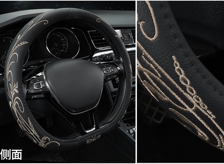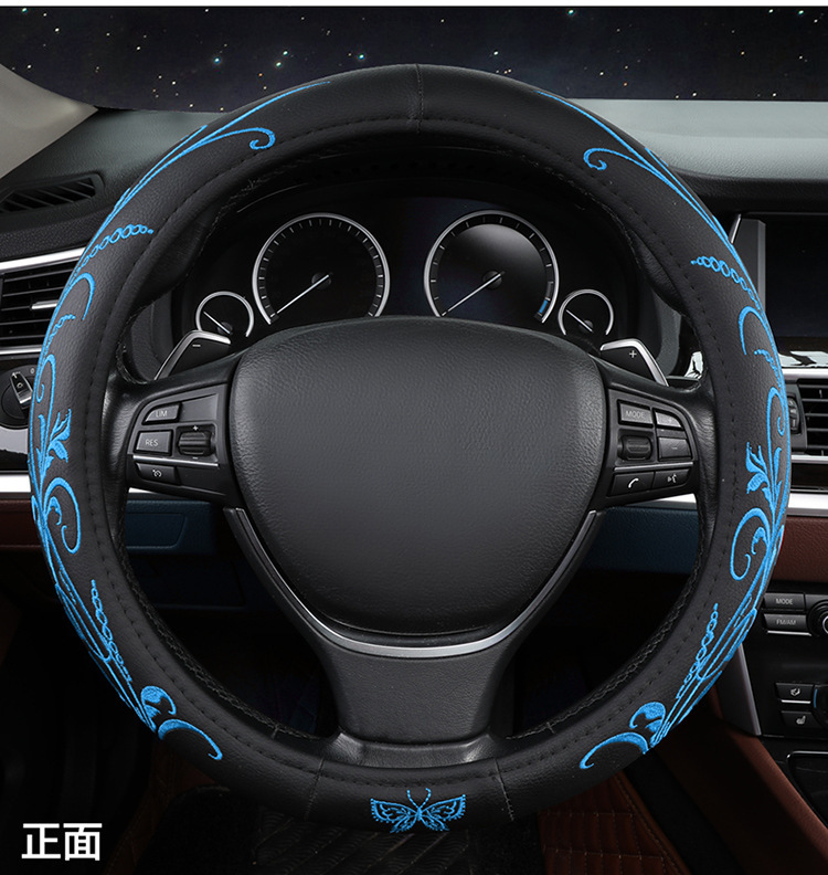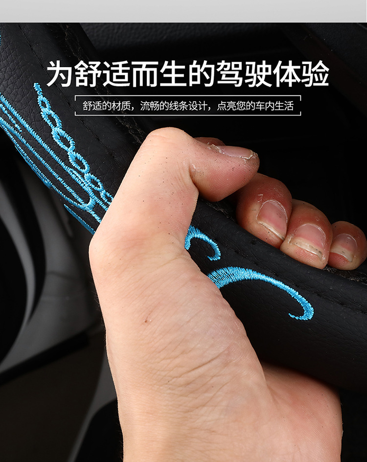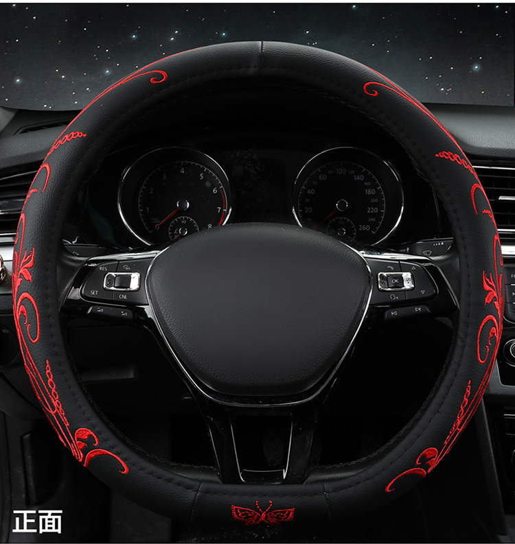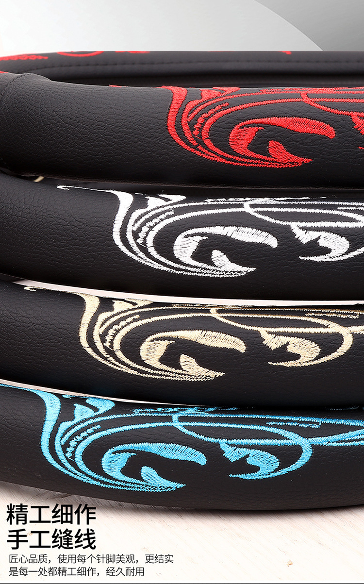 汽车方向盘套跨境四季通用皮革刺绣防滑吸汗夏季超薄车载内饰把套