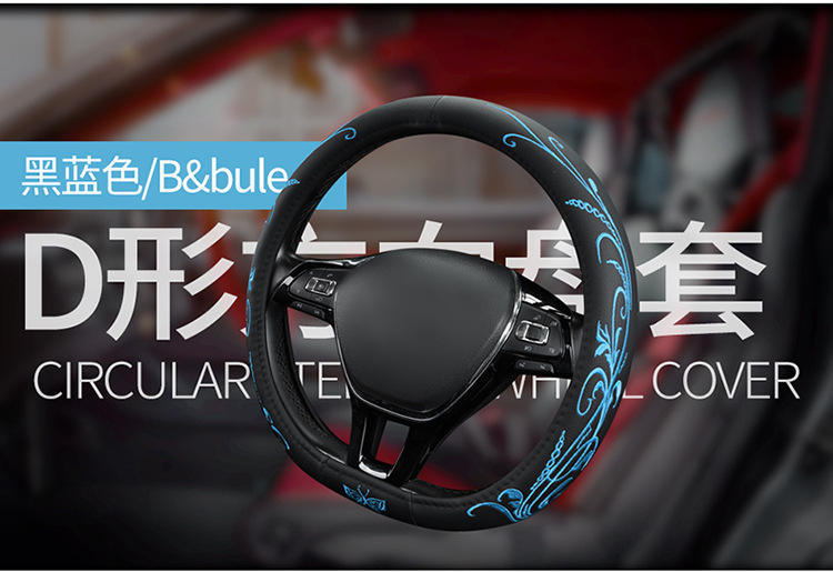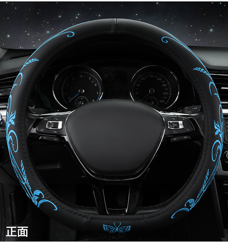 자동차 스티어링 휠 커버 크로스 보더 4 시즌 유니버설 가죽 자수 미끄럼 방지 땀 흡수성 여름 초박형 자동차 인테리어 핸들 커버
