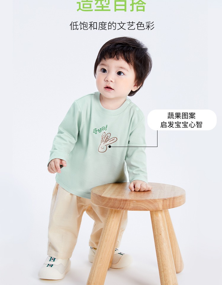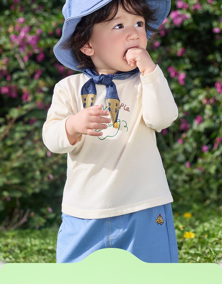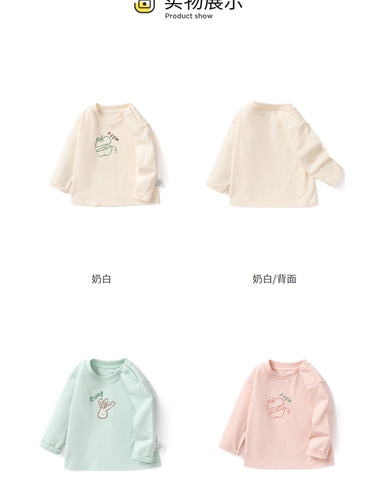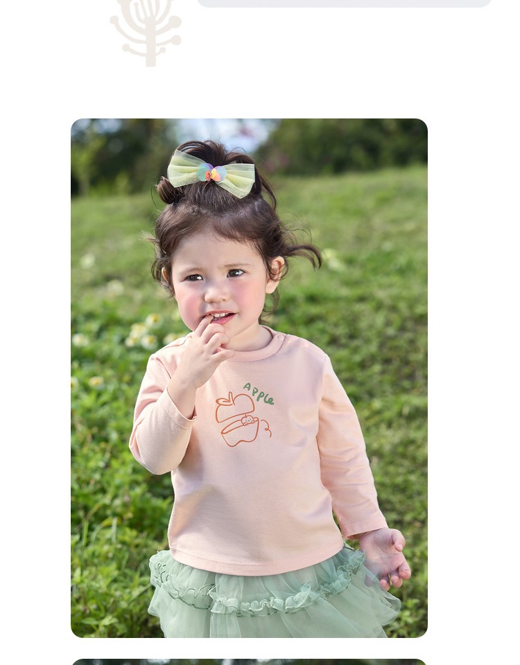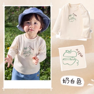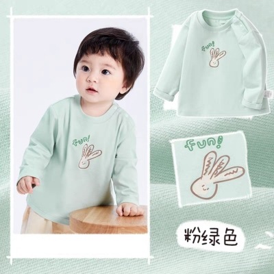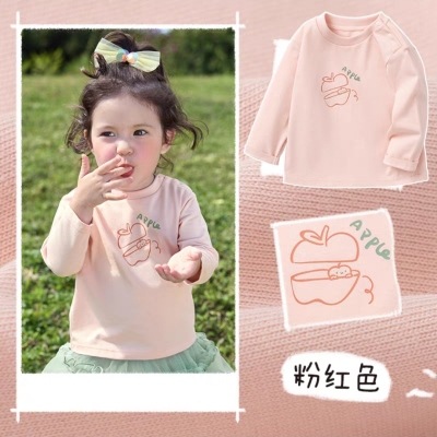 아기의 긴 소매 티셔츠 소녀의 봄과 가을 2024 남학생과 여학생을위한 새로운 스타일 탑 오픈 숄더 귀여운 아기의 순수한 면베이스 셔츠
