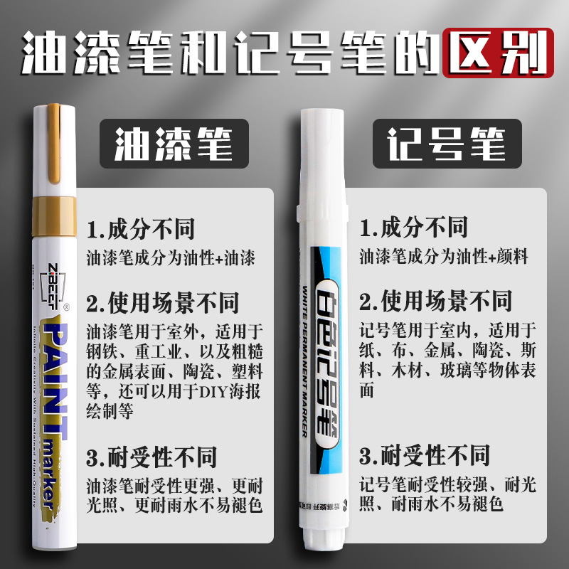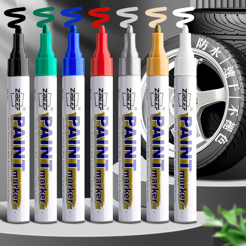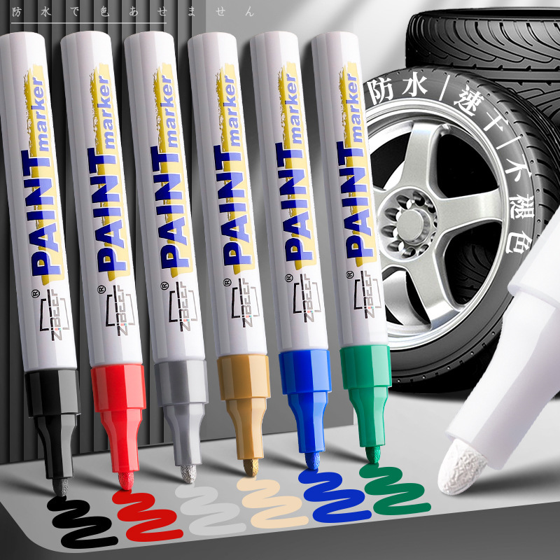 페인트 마커 펜은 방수 및 내유성이며 퇴색하기 쉽지 않습니다. 산업용 실버 흑백 터치업 페인트 유성 타이어 낙서
