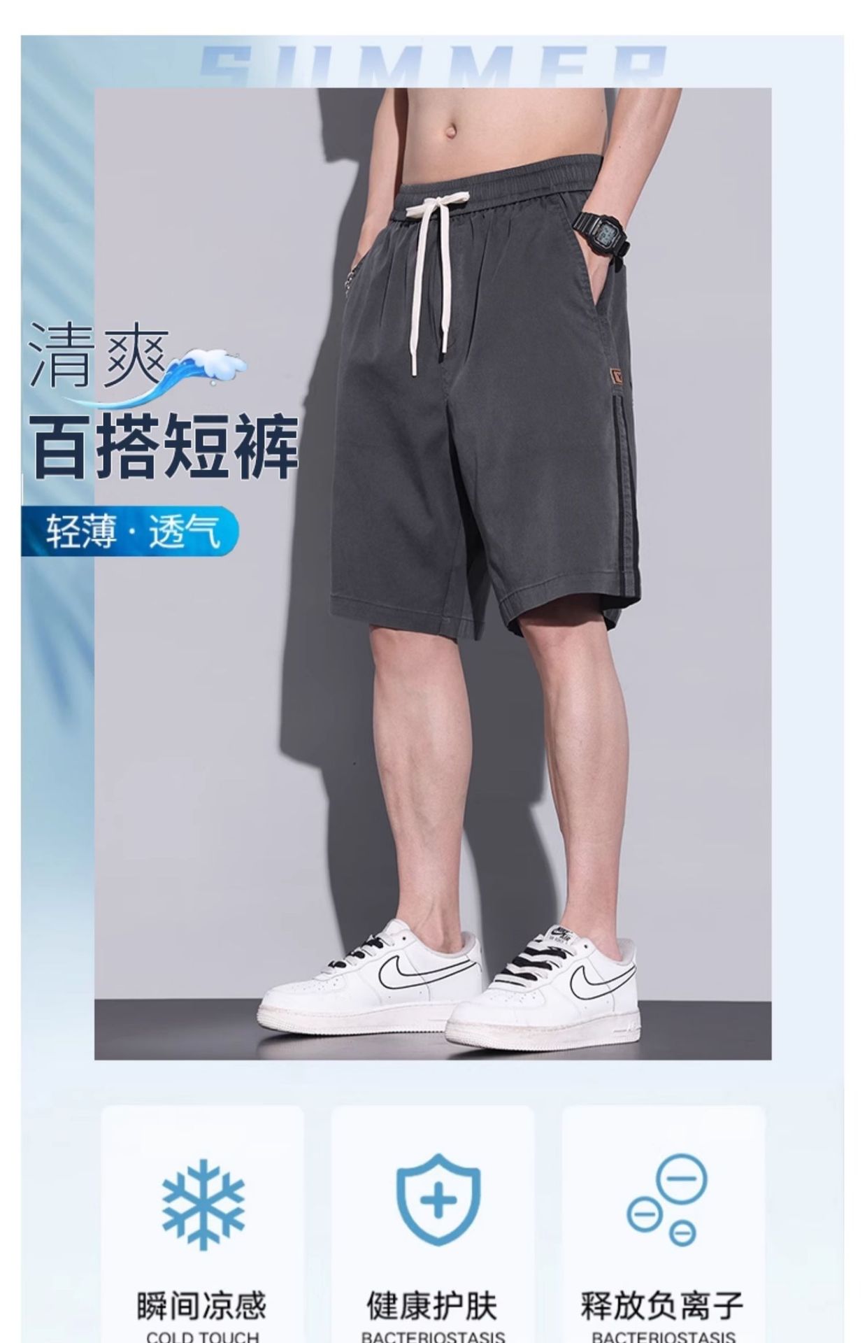 2024 새로운 도착 반바지 남자 여름 얇은 스포츠 바지 캐주얼 루즈 트렌디 브랜드 하프 바지 남자 아이스 실크 바지