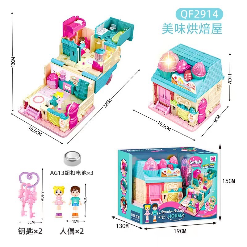 국경 간 변수 타운 캐빈 소녀 놀이 집 장난감 미니 보물 상자 어린이 시뮬레이션 빌라 캐슬 모델스토어 가기