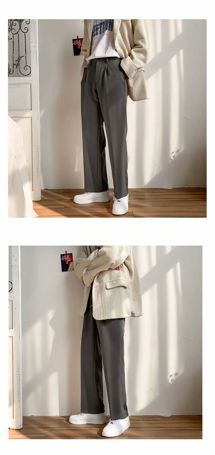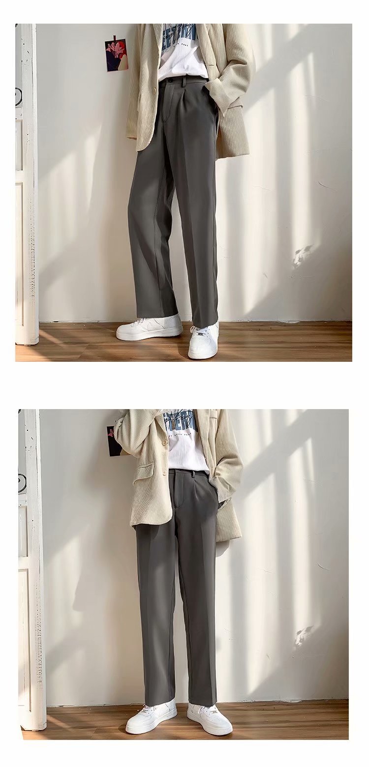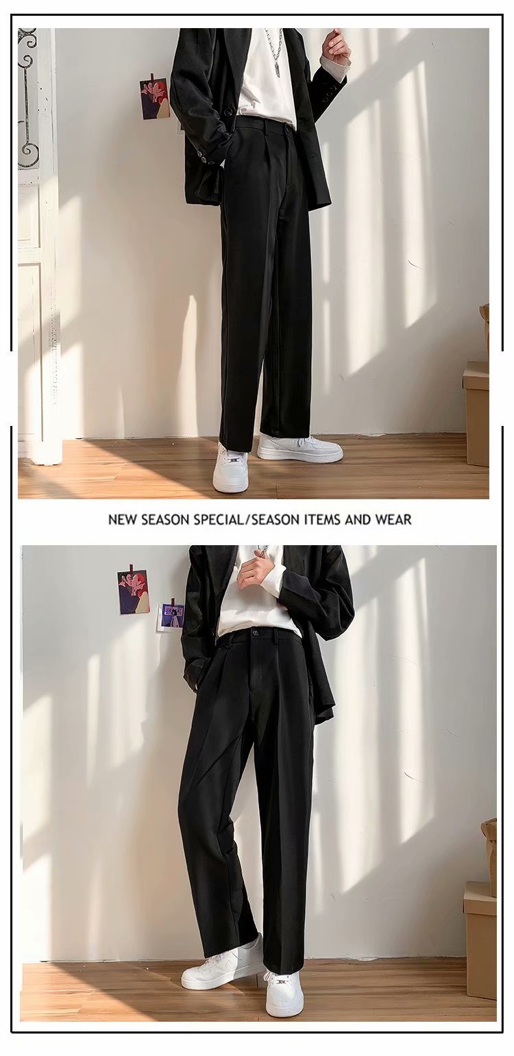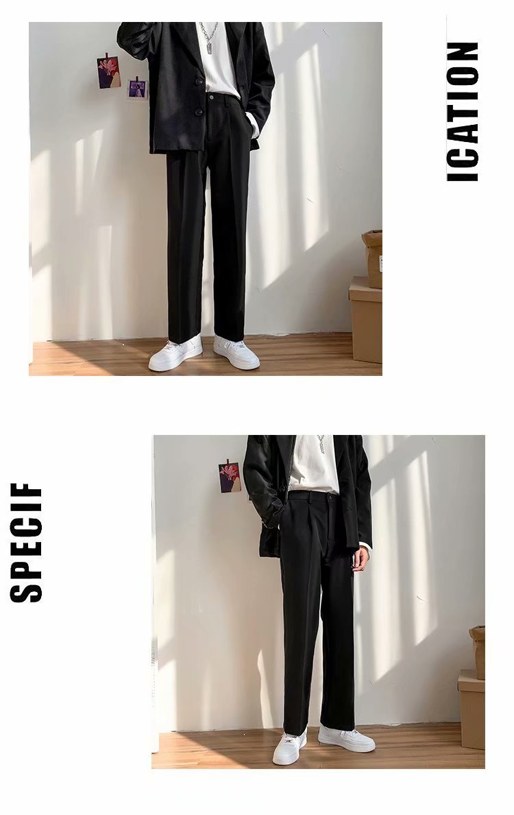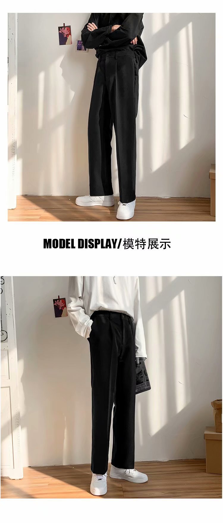 가을과 겨울 한국 스타일 서양 바지 남자 스트레이트 느슨한 펜던트 드롭 봄과 가을 올 매치 블랙 세트 바지 기모 캐주얼 바지스토어 가기