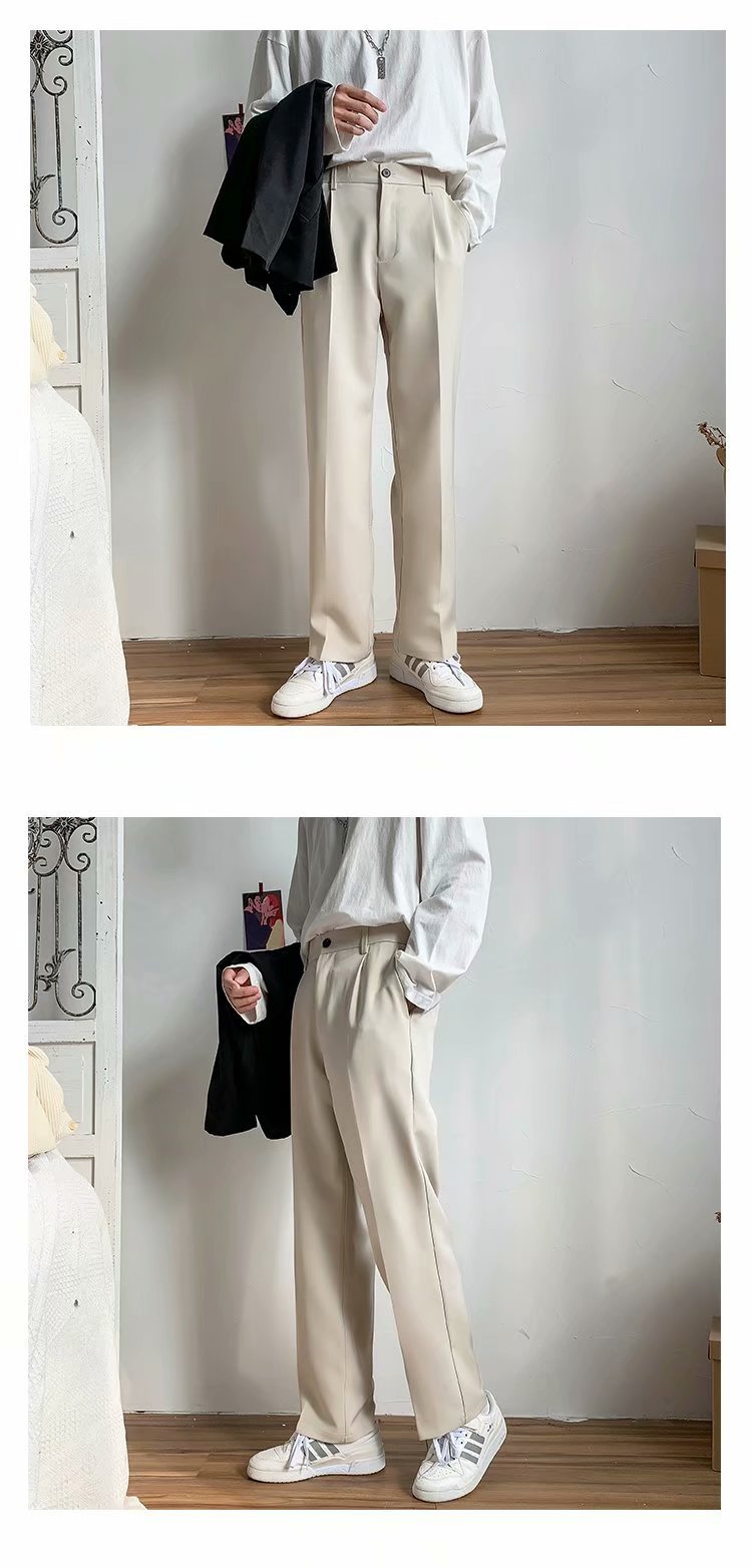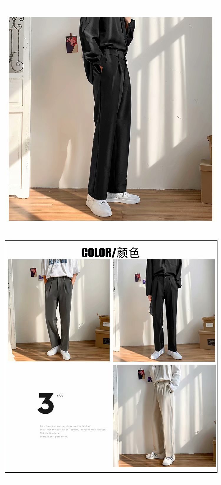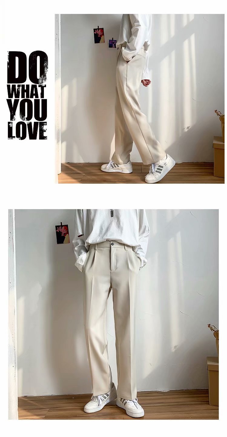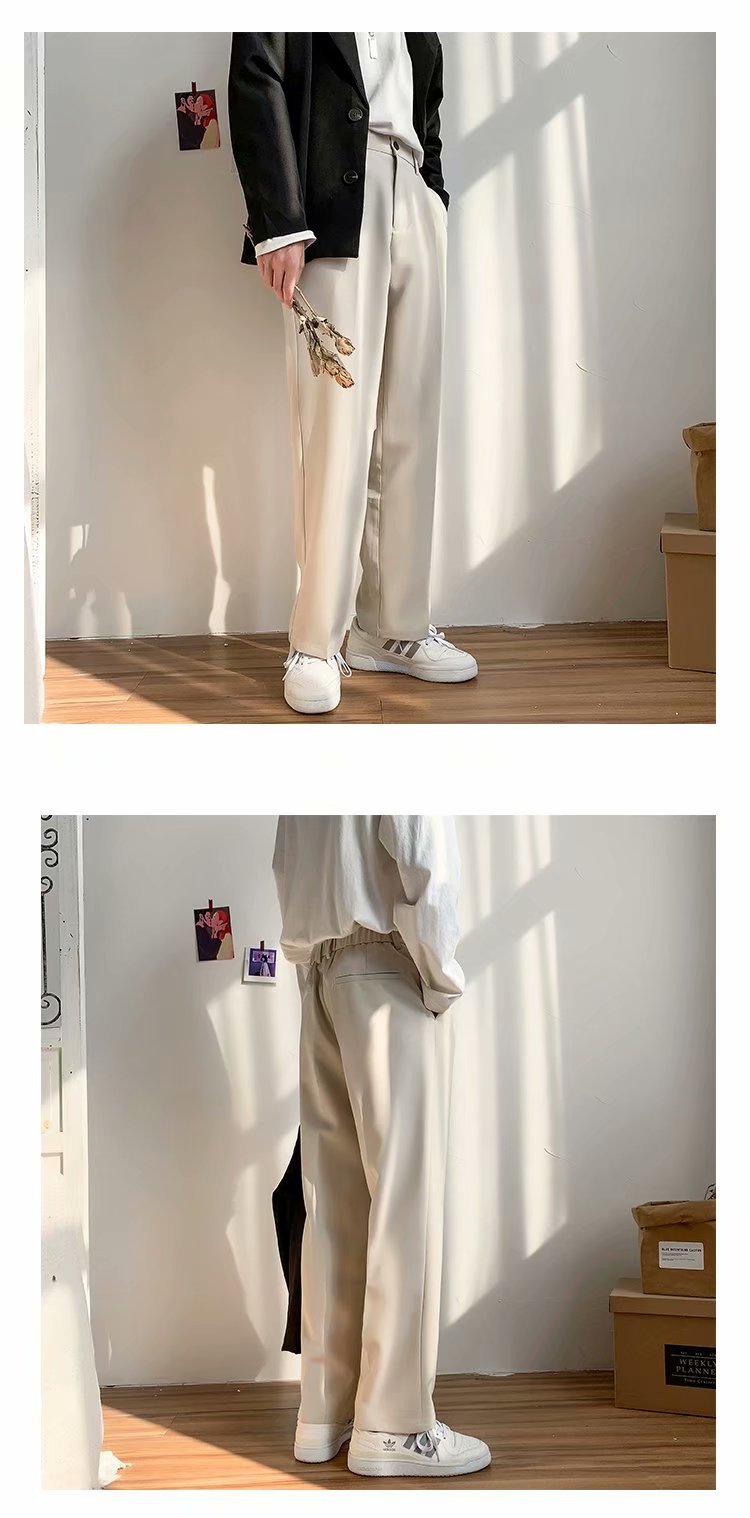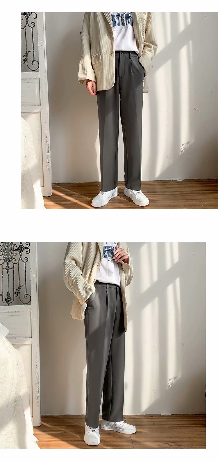 가을과 겨울 한국 스타일 서양 바지 남자 스트레이트 느슨한 펜던트 드롭 봄과 가을 올 매치 블랙 세트 바지 기모 캐주얼 바지스토어 가기