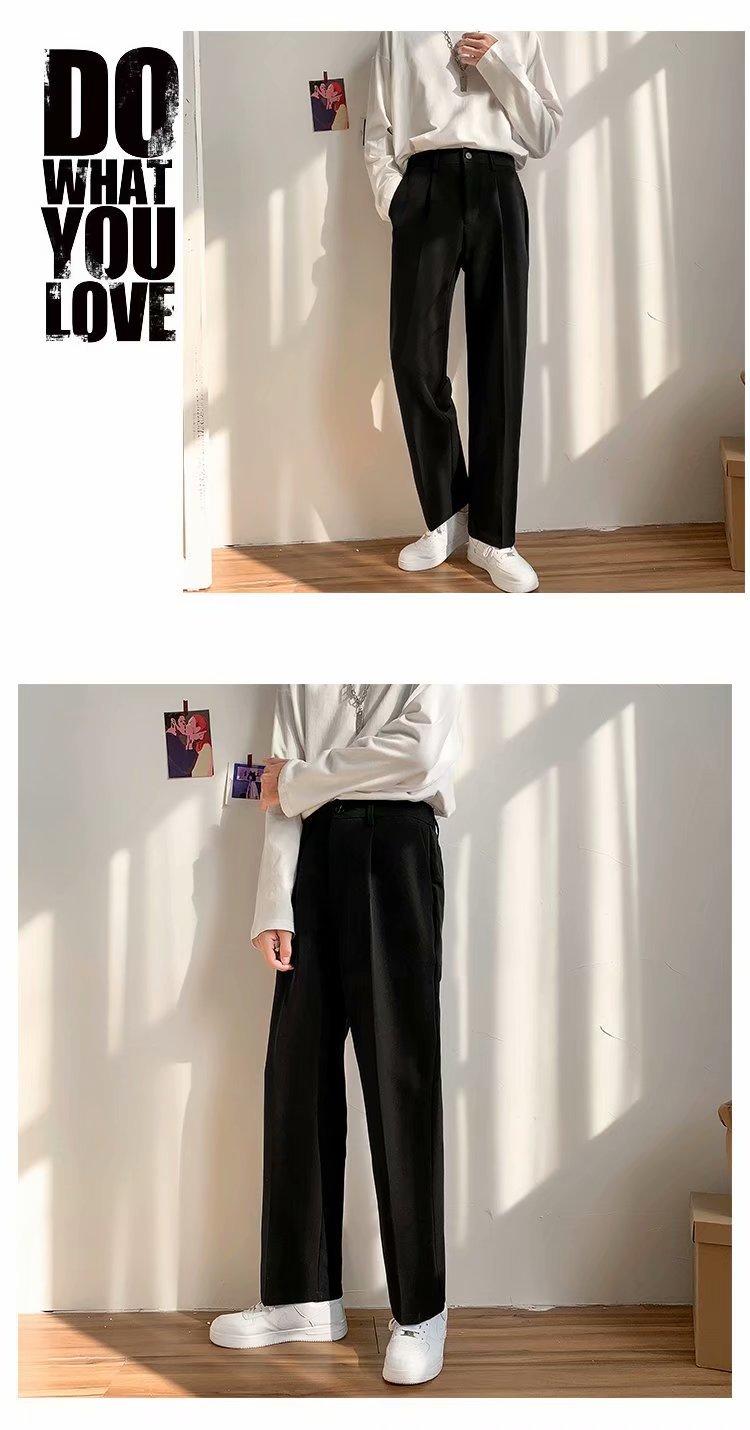 가을과 겨울 한국 스타일 서양 바지 남자 스트레이트 느슨한 펜던트 드롭 봄과 가을 올 매치 블랙 세트 바지 기모 캐주얼 바지