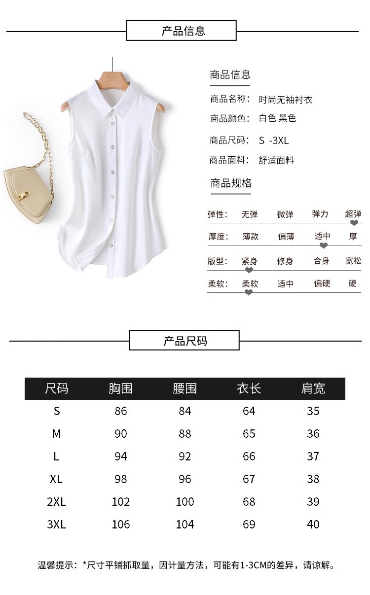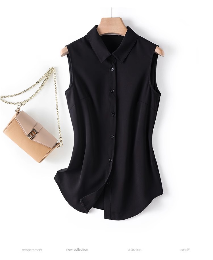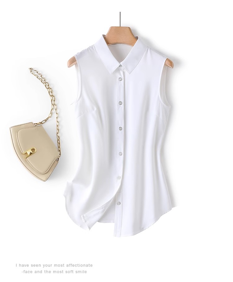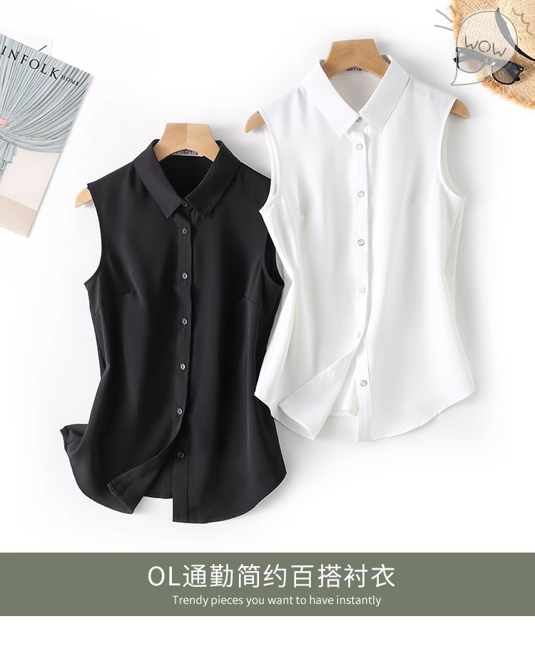 흰색 민소매 셔츠 칼라 여성의 봄 가을 여름 허리 코트 프로베이스 조끼 쉬폰 셔츠스토어 가기