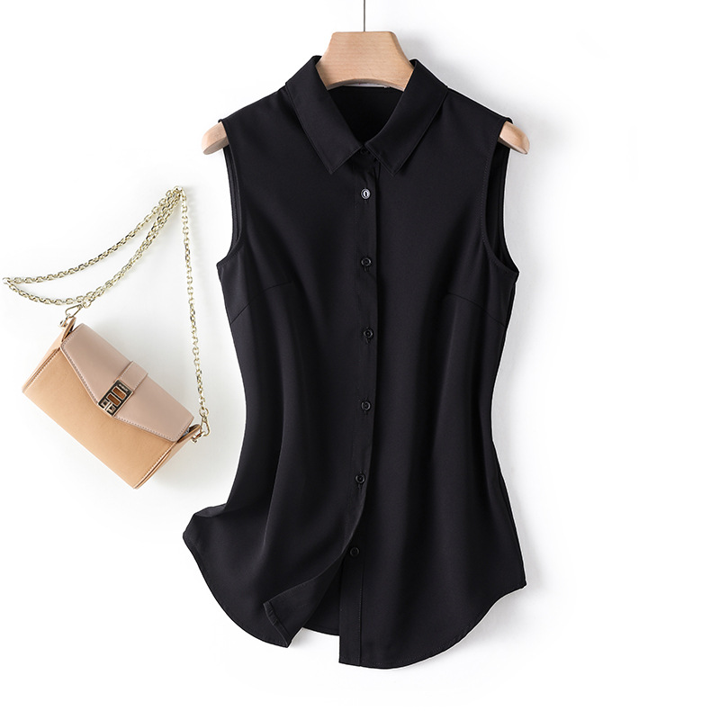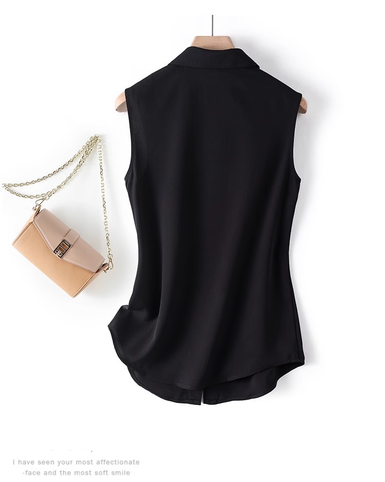 흰색 민소매 셔츠 칼라 여성의 봄 가을 여름 허리 코트 프로베이스 조끼 쉬폰 셔츠