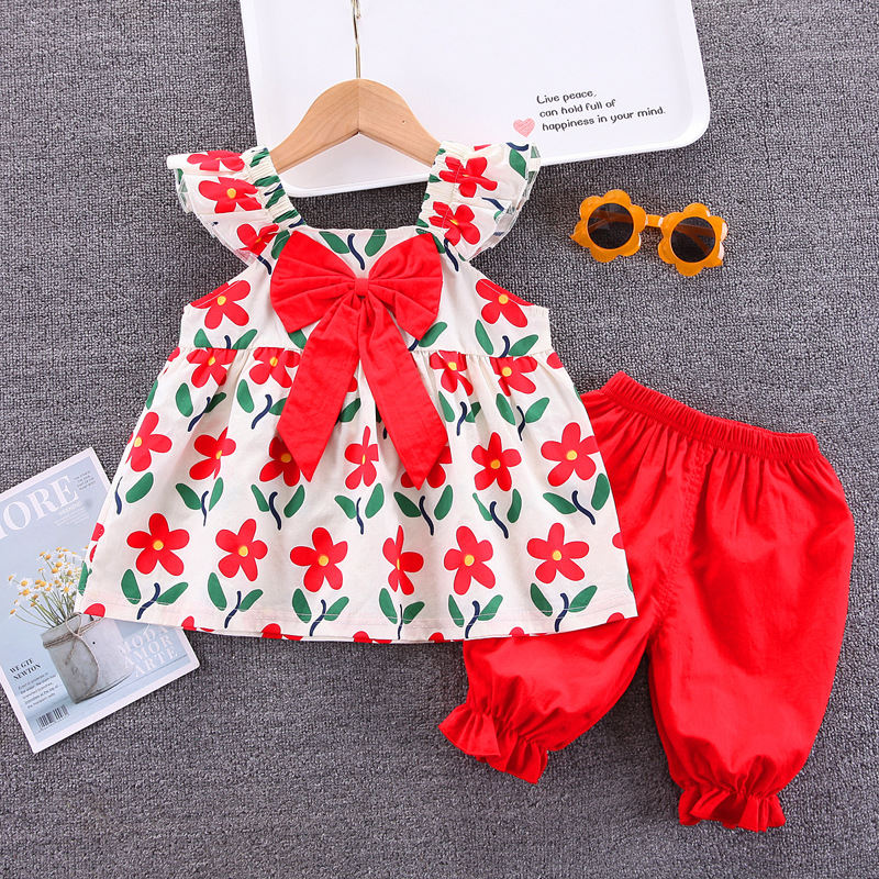 가공 소녀 여름 아기 어린이 세트 1-4 세 2 아기 소녀 짧은 소매 유행 여름 투피스 세트 도매
