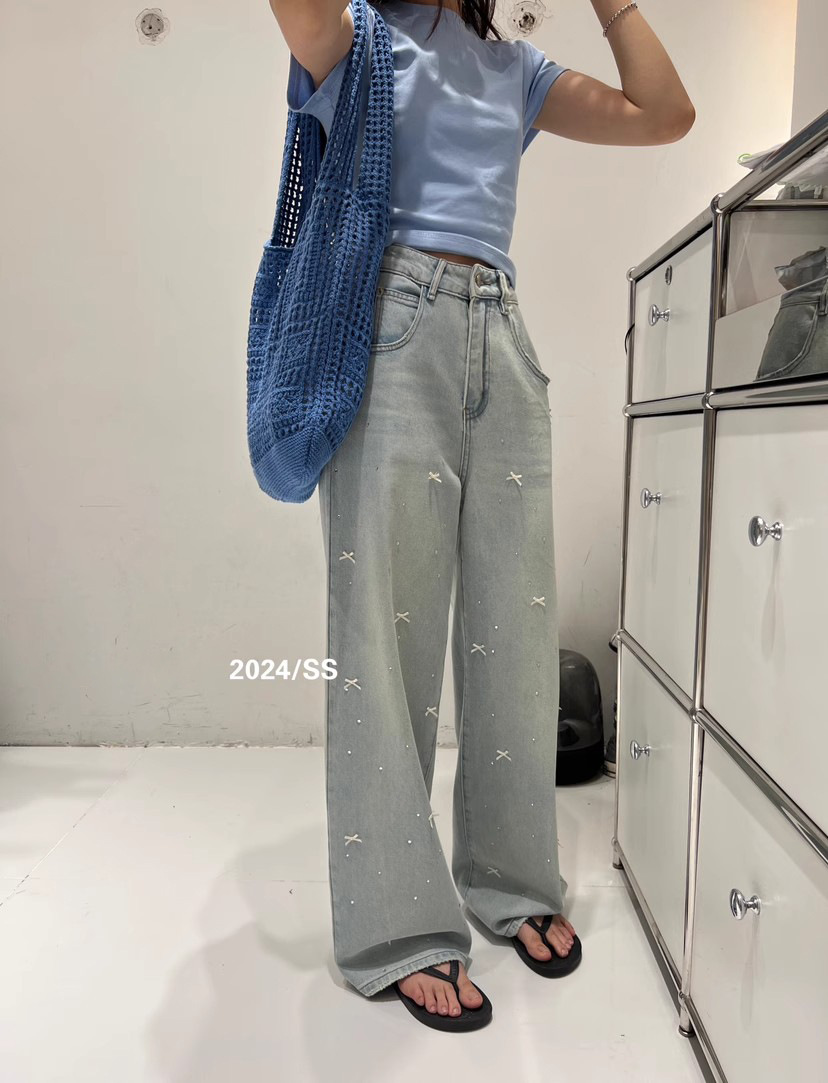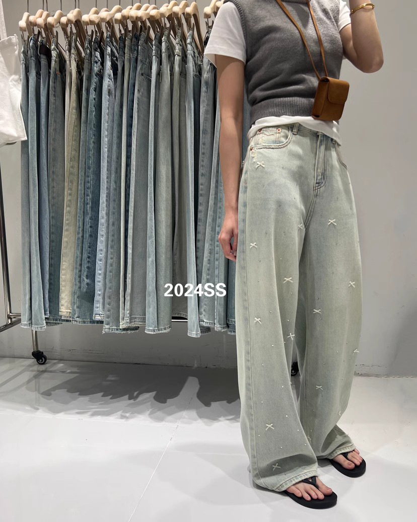 활 핫 다이아몬드 패션 스트레이트 청바지 여성의 봄/여름 2024 새로운 틈새 느슨한 넓은 다리 바지스토어 가기