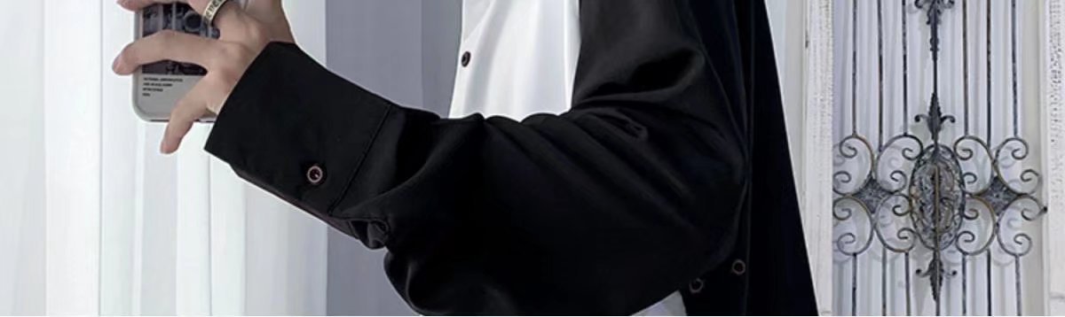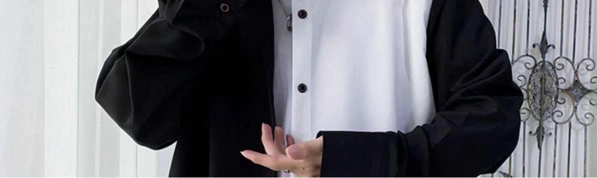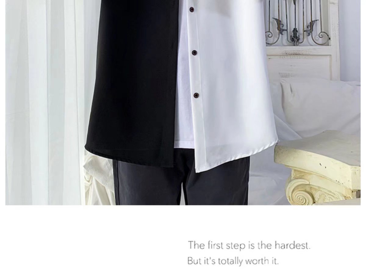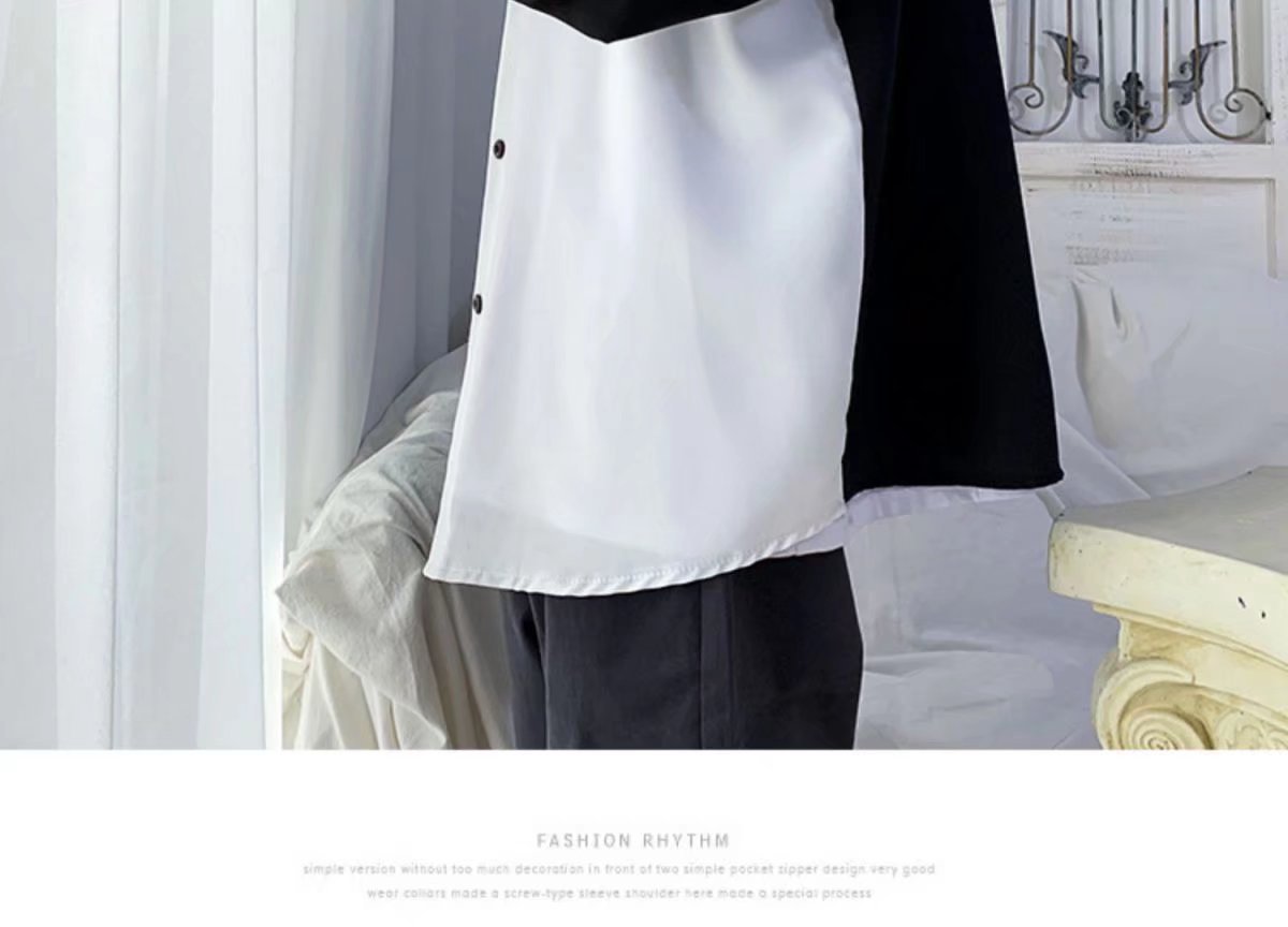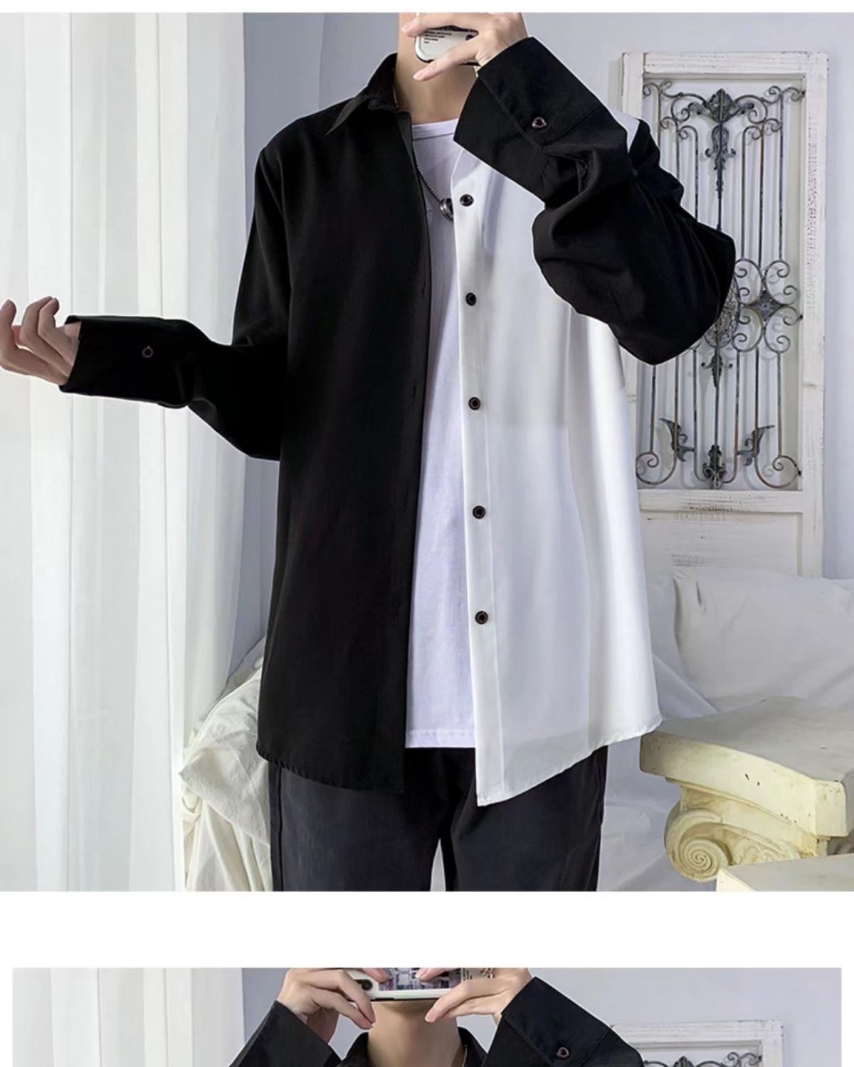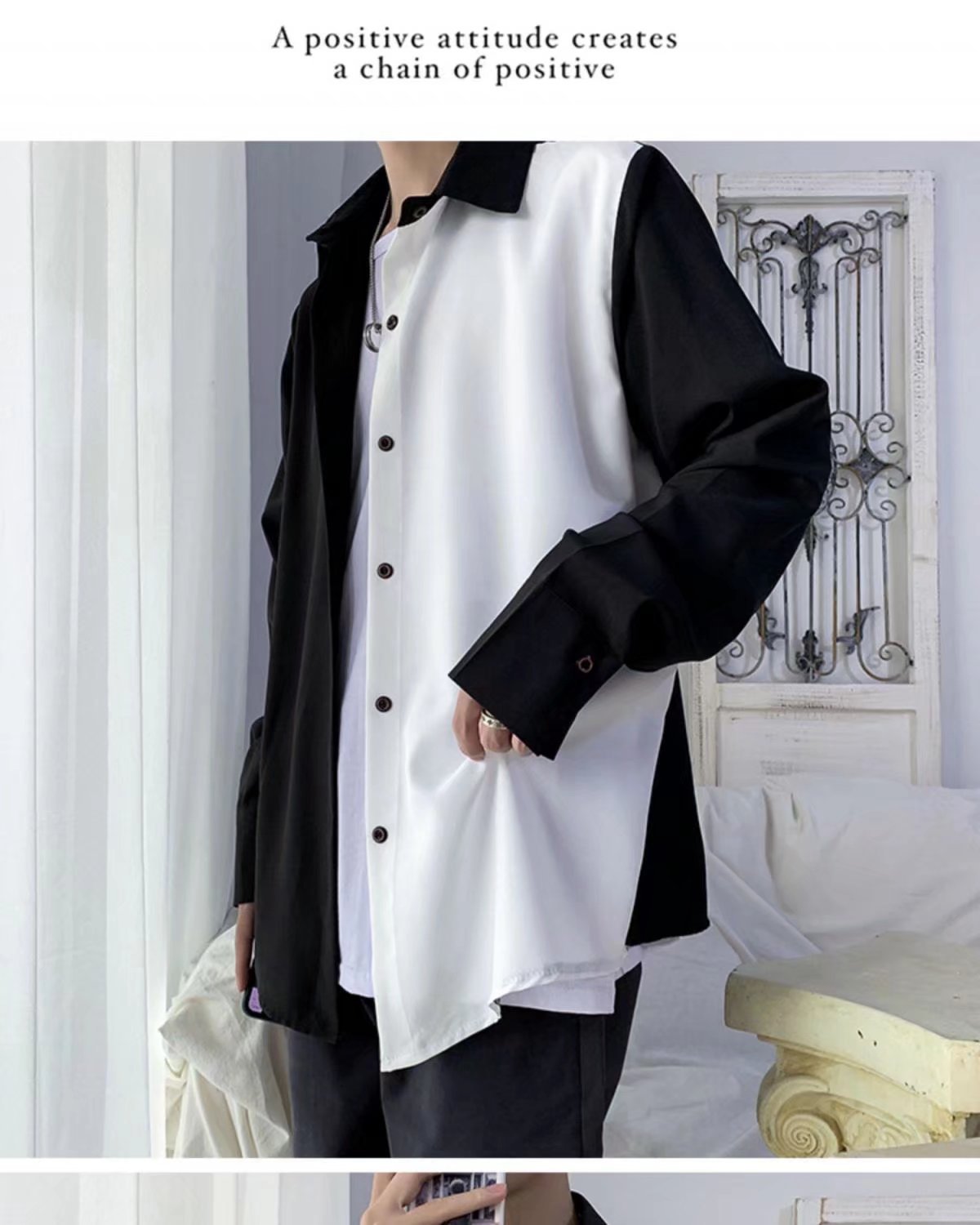 금욕 남성용 콜드 스타일 셔츠 남성 디자인 센스 니쉬 가을 최고 흑백 스티칭 셔츠 프라이드 스트리트 재킷