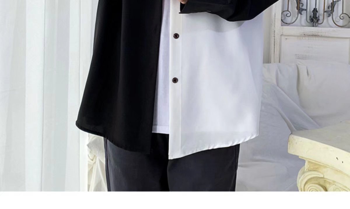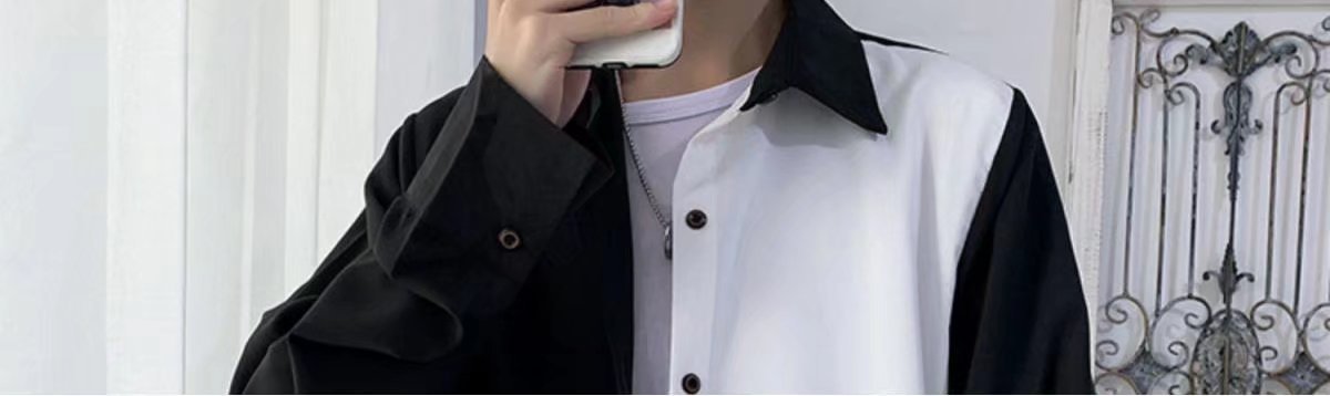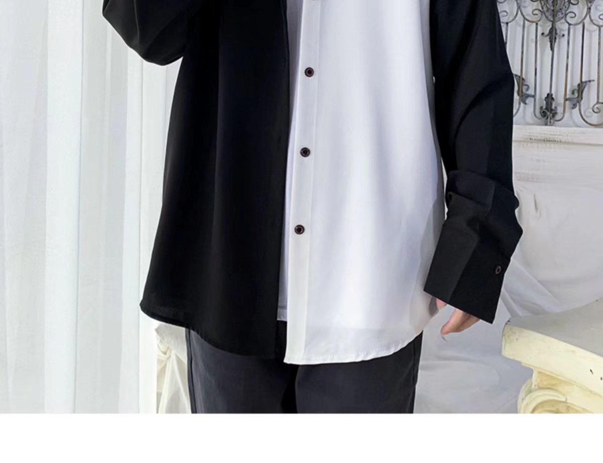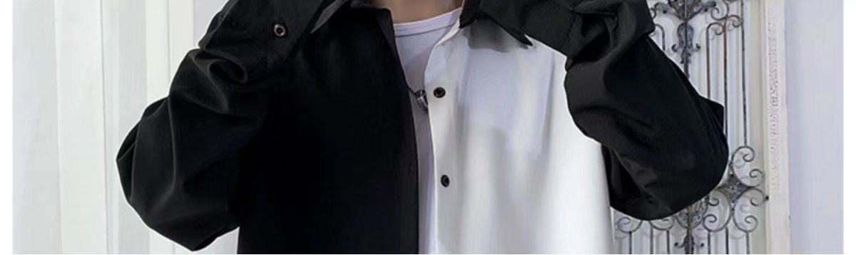 금욕 남성용 콜드 스타일 셔츠 남성 디자인 센스 니쉬 가을 최고 흑백 스티칭 셔츠 프라이드 스트리트 재킷스토어 가기