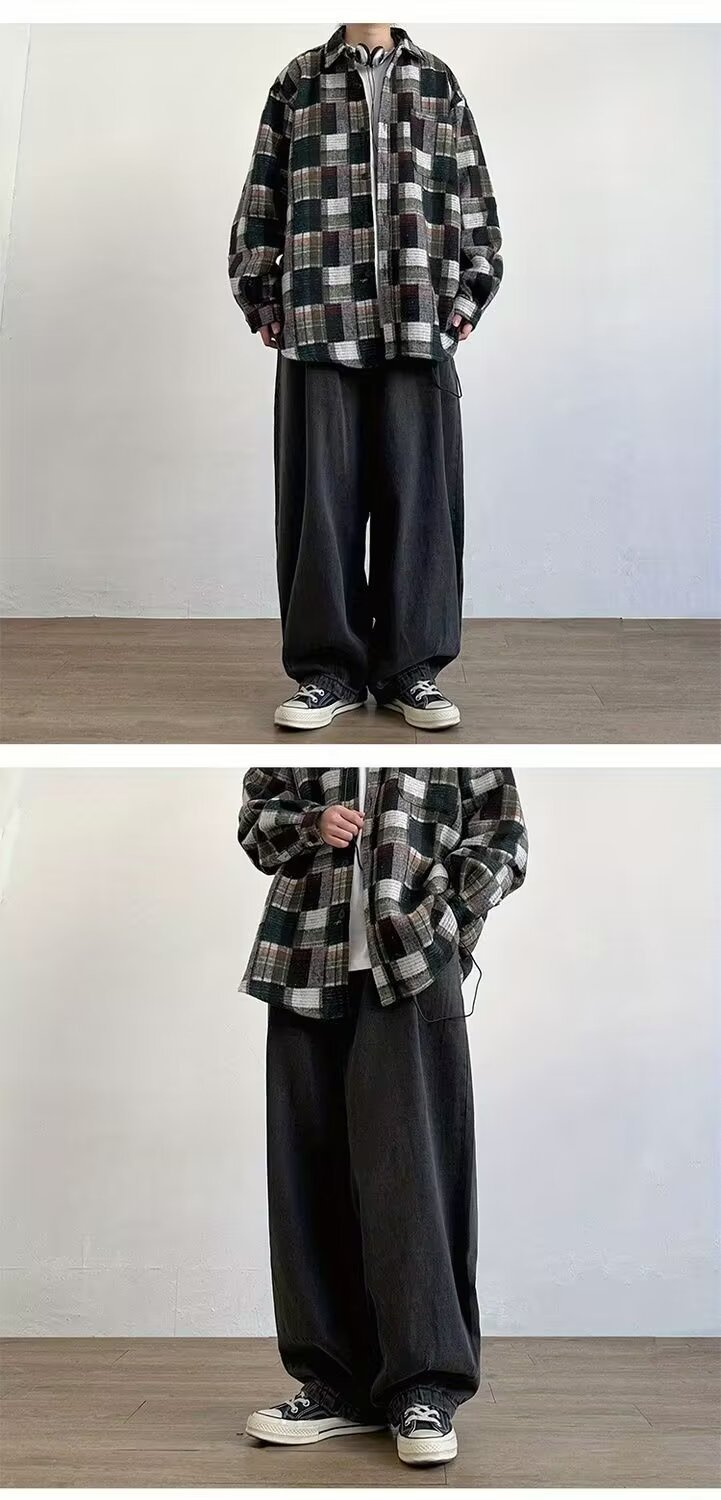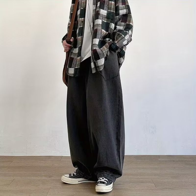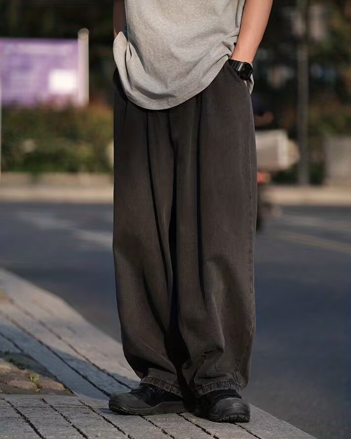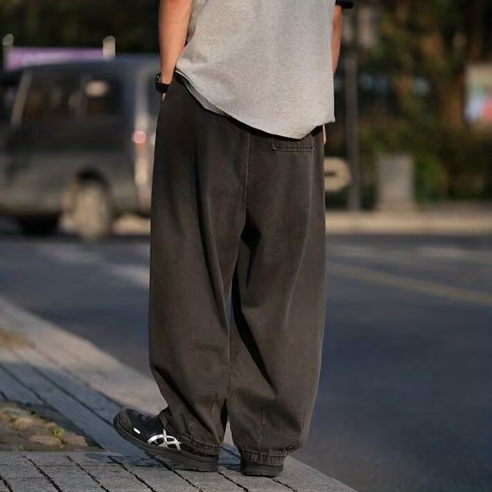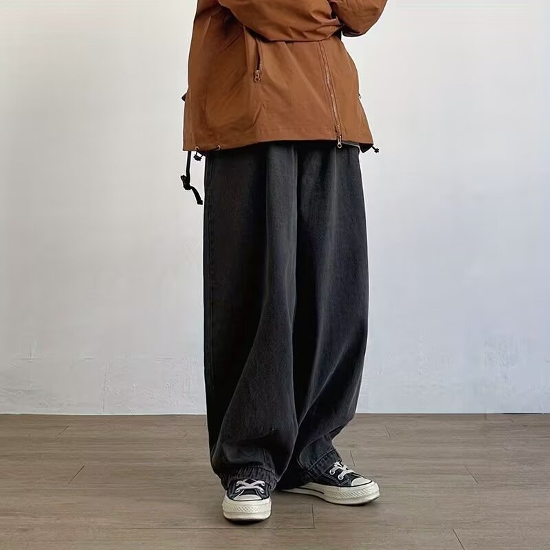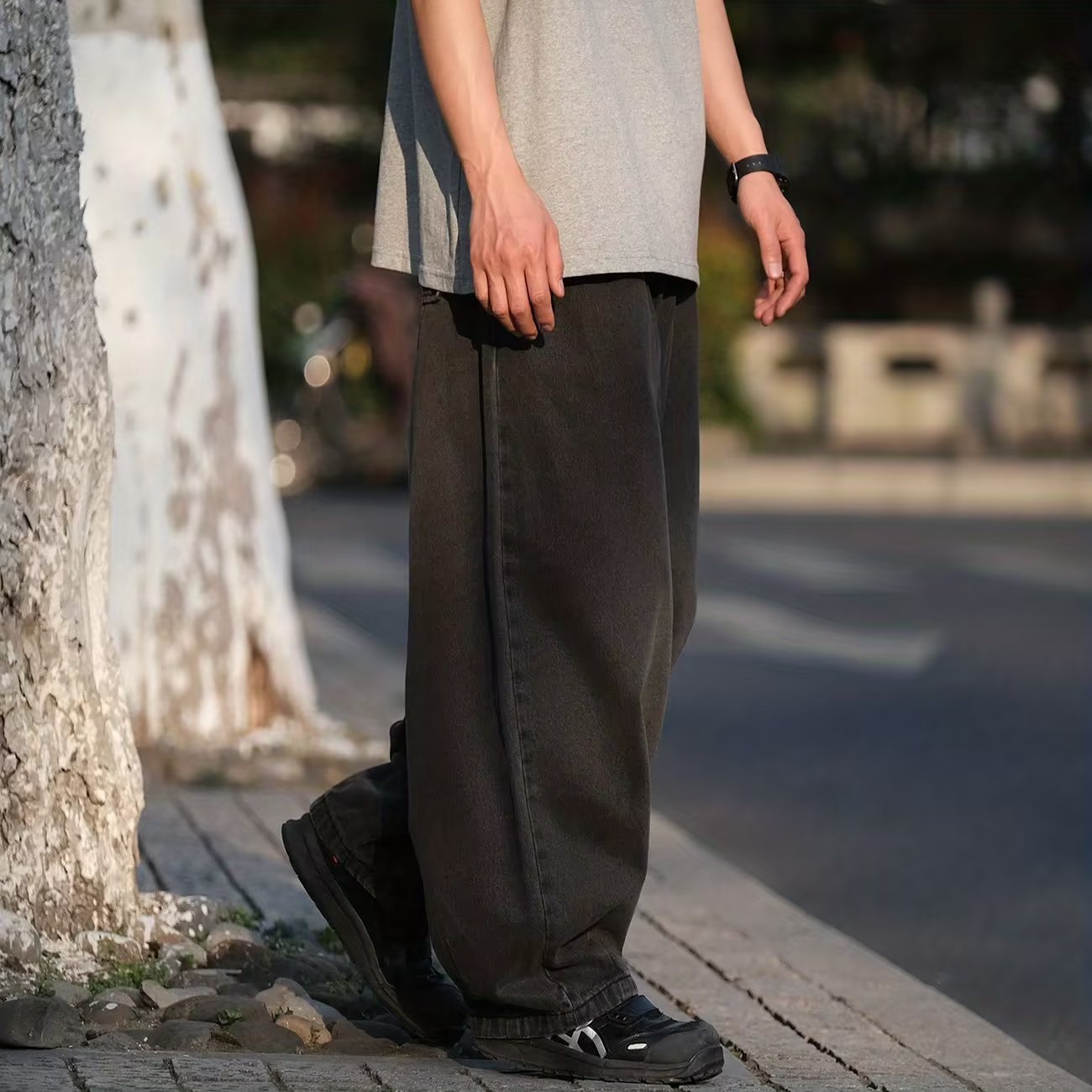 남자 봄과 여름 아메리칸 스타일 레트로 대형 힙합 청바지 느슨한 스트레이트 와이드 레그 팬츠 올 매치 플로어-플로어스토어 가기