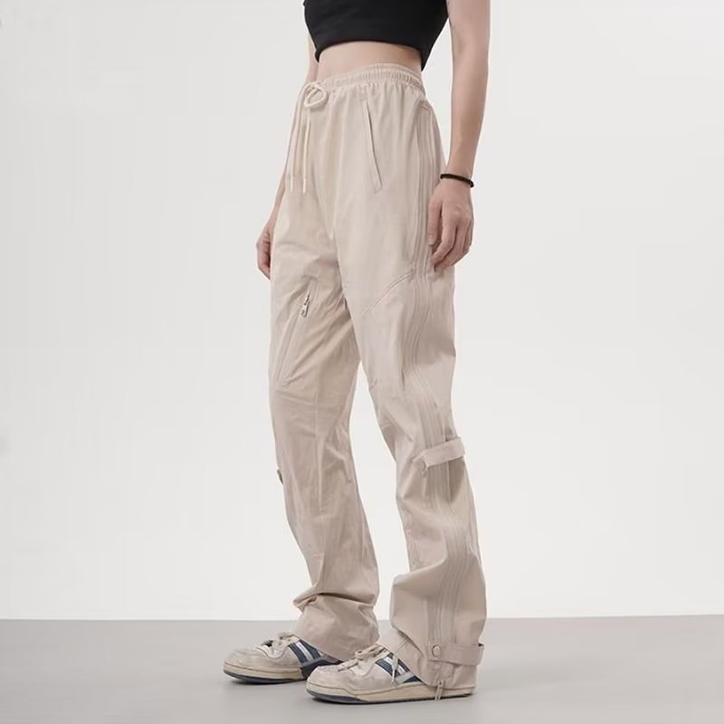 2022 가을과 겨울 새로운 지퍼 기능성 바람 충전 바지 남성 미국 패션 브랜드 블랙 야외 방수 캐주얼 바지