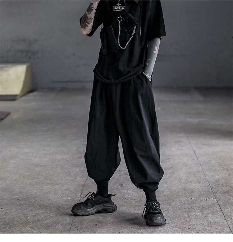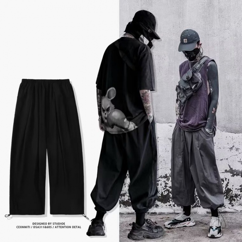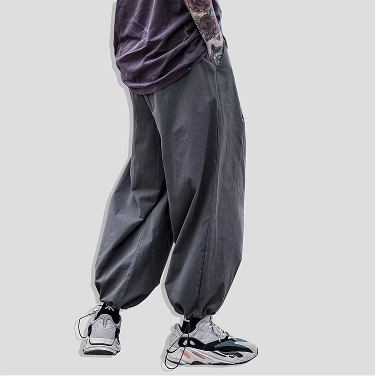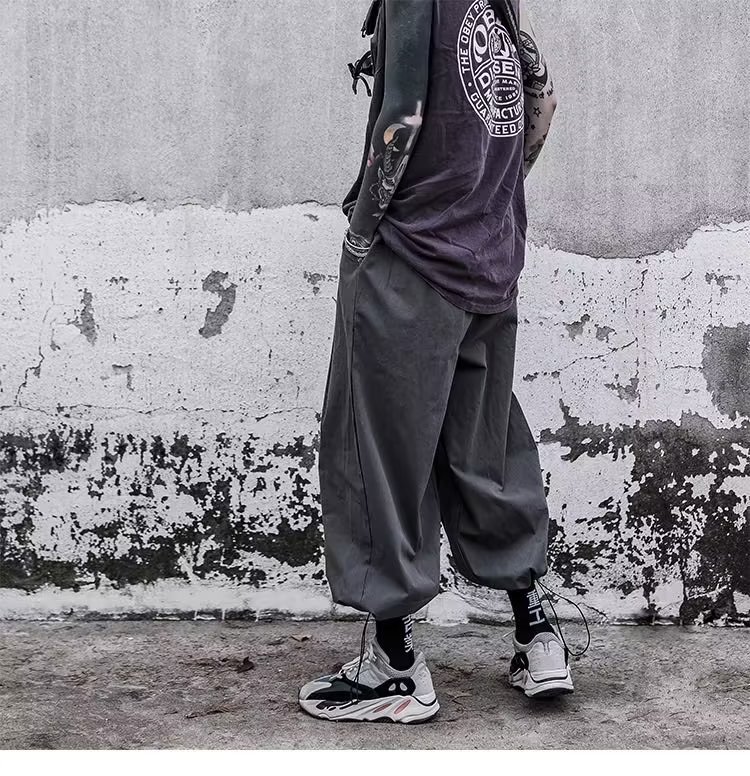 국경을 넘는 여름 얇은 낙하산 넓은 다리 충전 바지 2024 미국 스타일 복고풍 회색 작업복 여성용스토어 가기