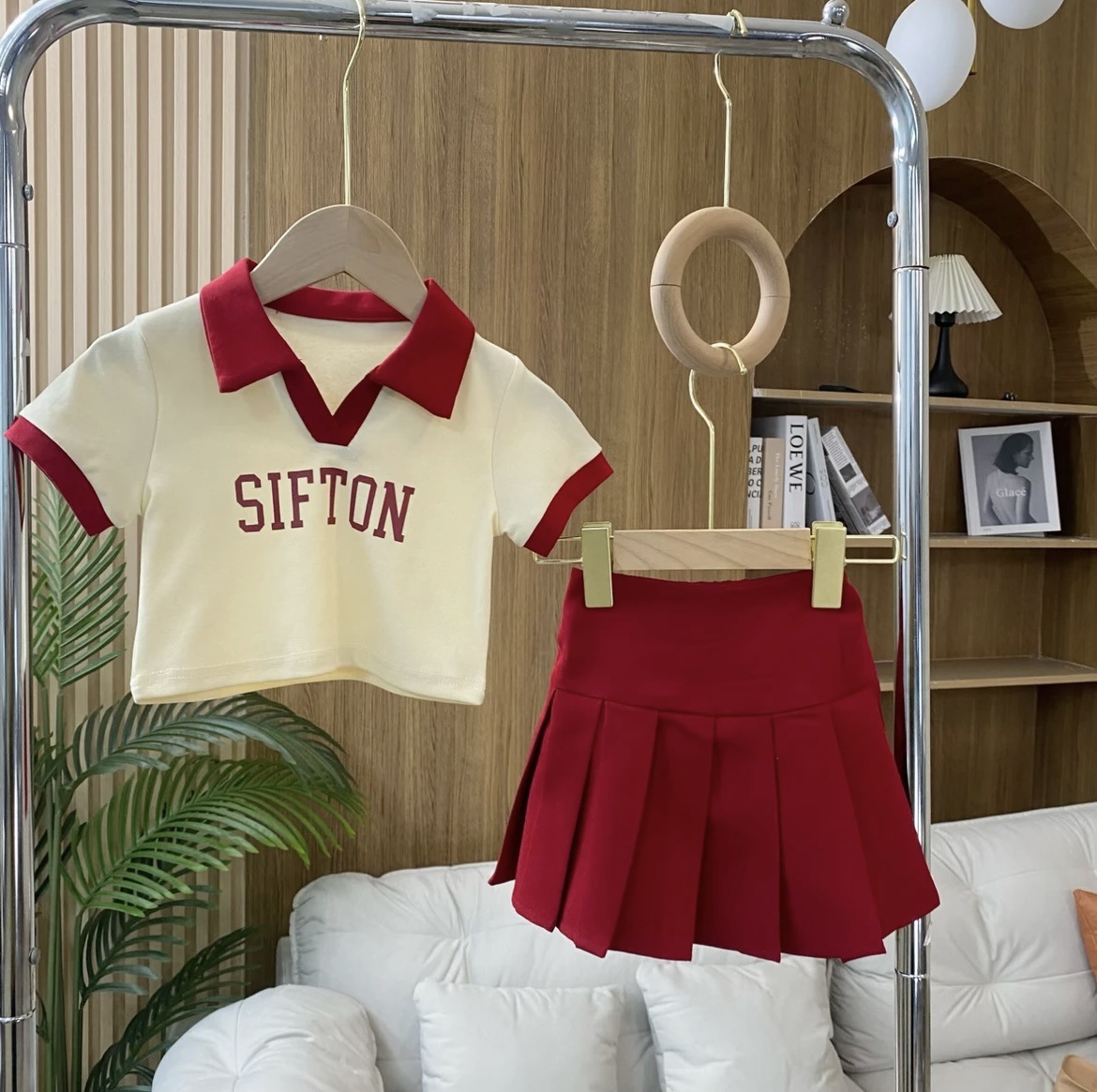 여아 여름 대학 스타일 정장 2025 새로운 패션 스타일 폴로 셔츠, 반팔 티셔츠, 어린이 및 중년 어린이를 위한 플리츠 스커트스토어 가기