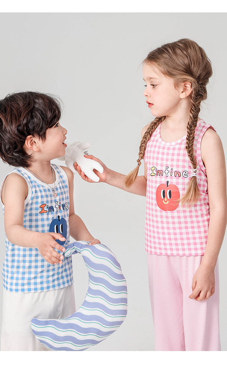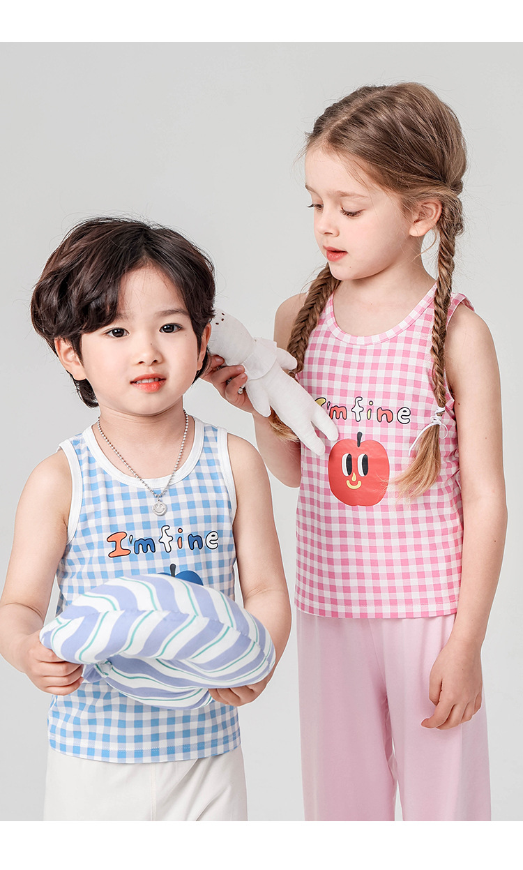 ZYZ 디자이너 소녀 조끼 여름 새로운 격자 무늬 애플 홈웨어 야세르 클래스 A 어린이 조끼스토어 가기