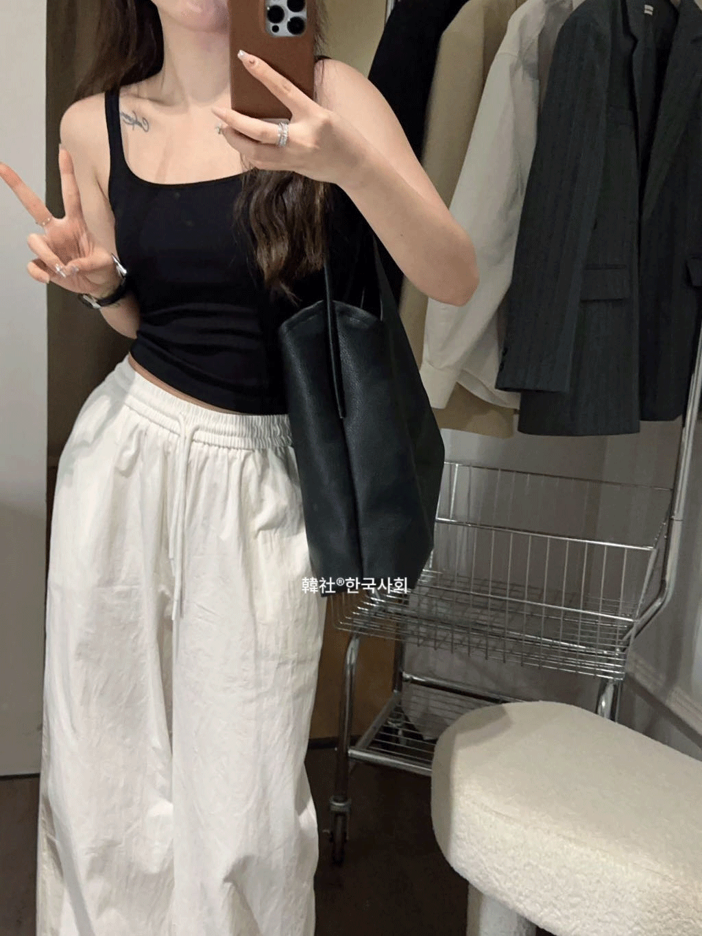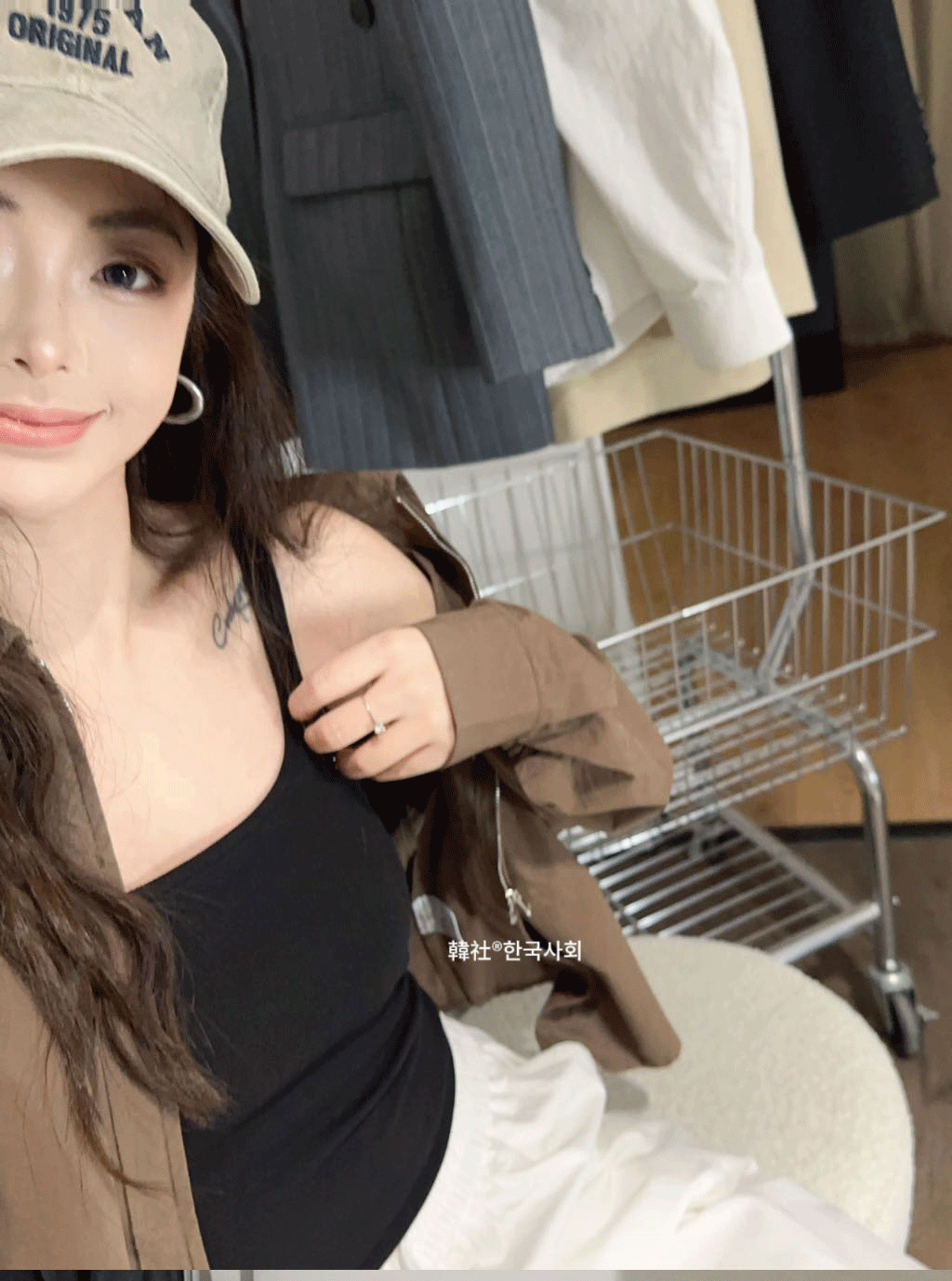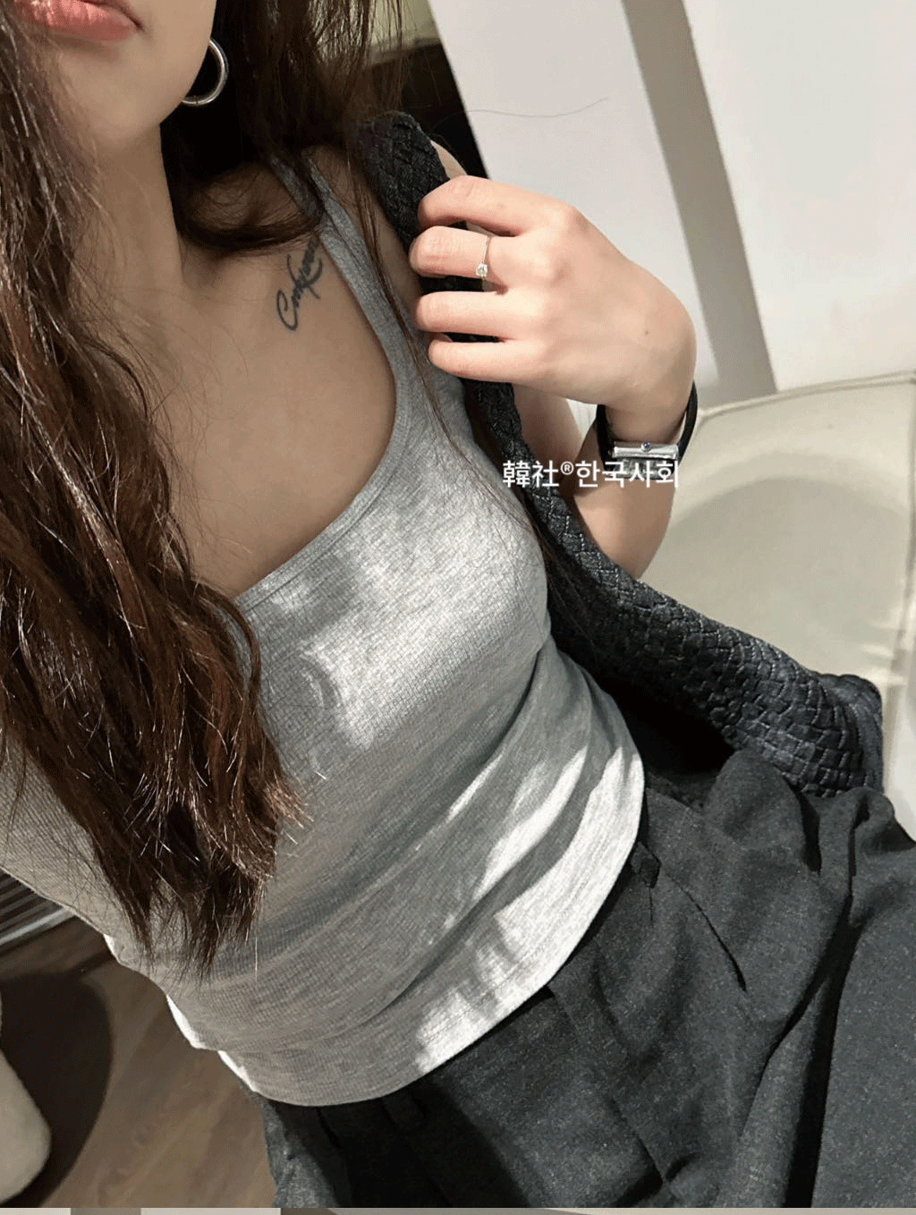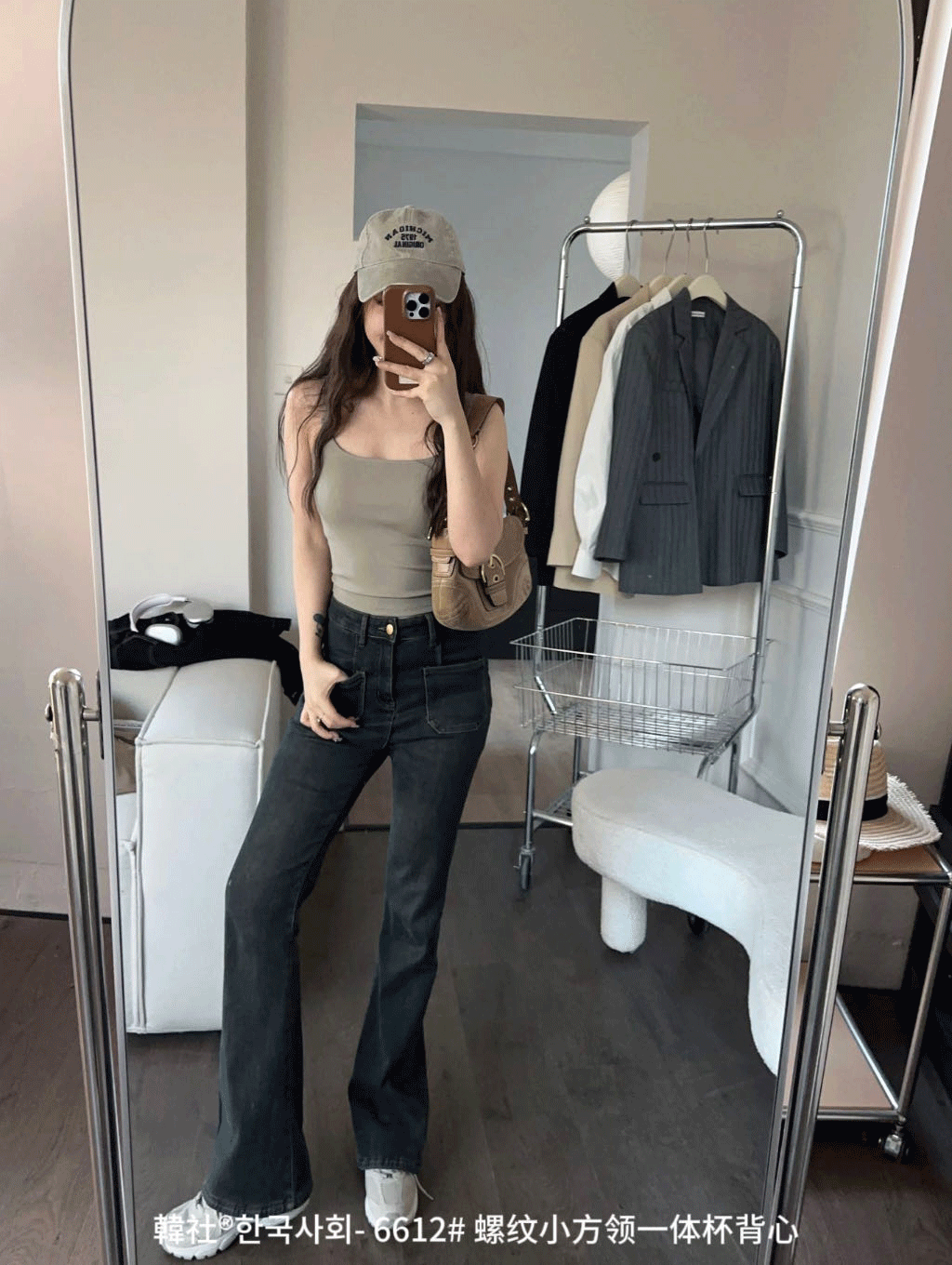 6612 Threaded Small Square Collar Sling Fixed Cup Vest 여성용 슬림 핏 내복 외부 착용 슬림 해 보이는 파라 가슴을 덮는 아름다운 뒷 조끼스토어 가기