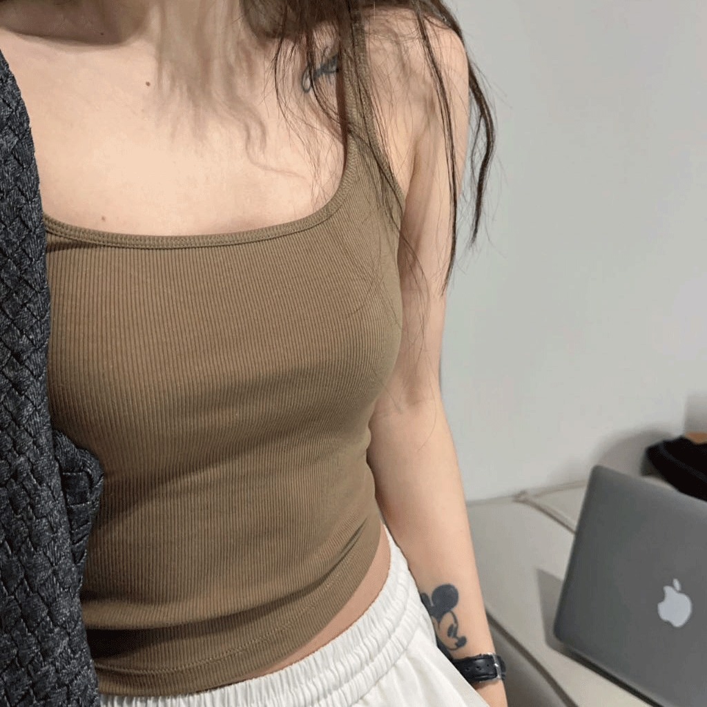 6612 Threaded Small Square Collar Sling Fixed Cup Vest 여성용 슬림 핏 내복 외부 착용 슬림 해 보이는 파라 가슴을 덮는 아름다운 뒷 조끼